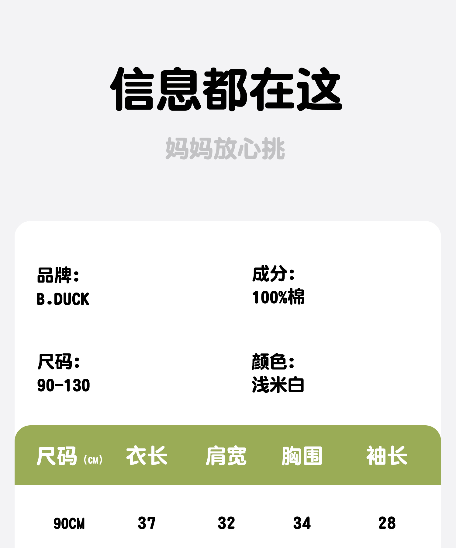 B.Duck小黄鸭童装夏季短袖T恤90-130 BF2601018