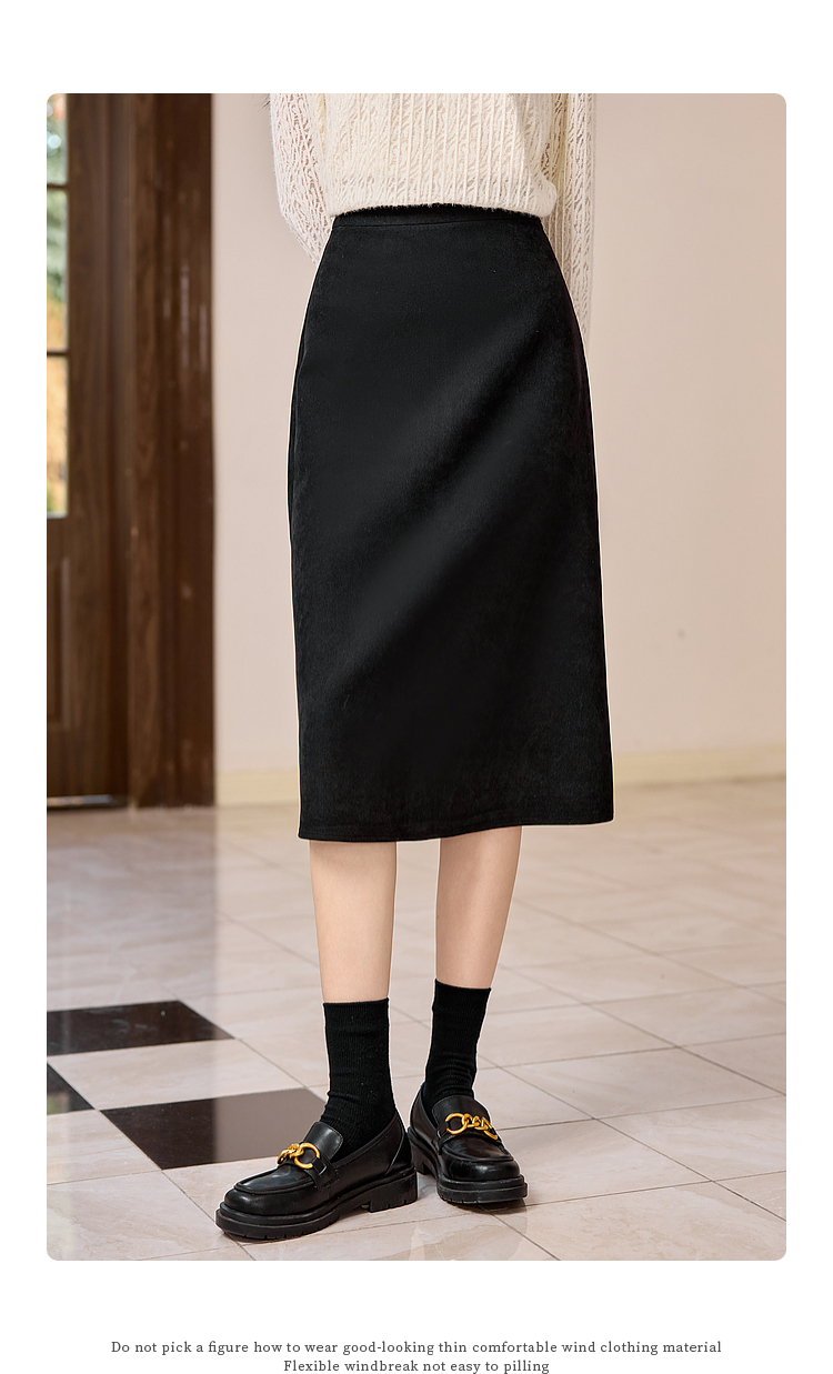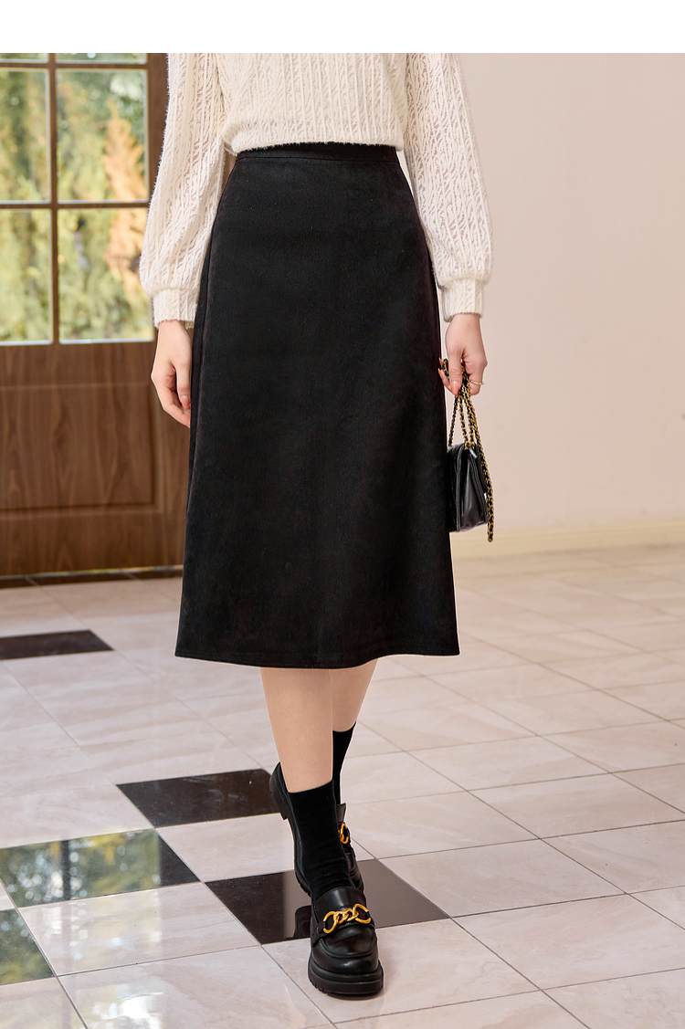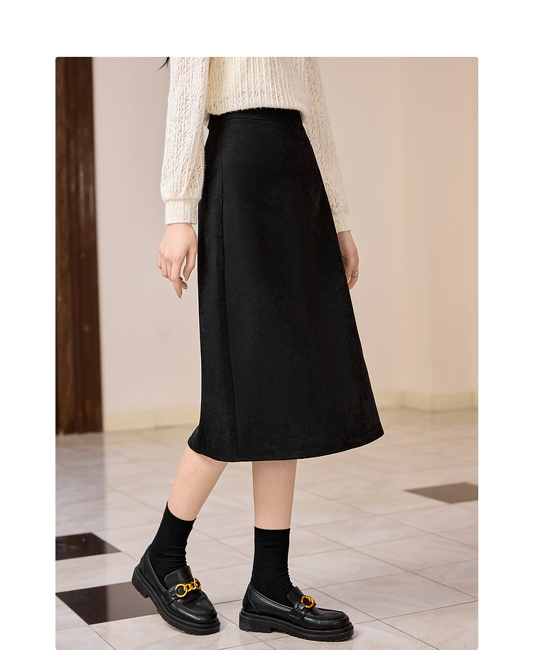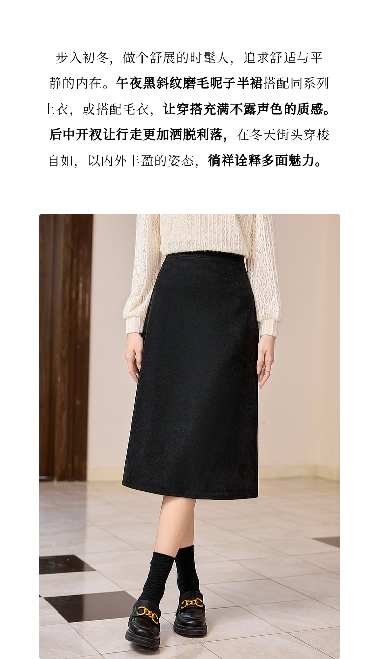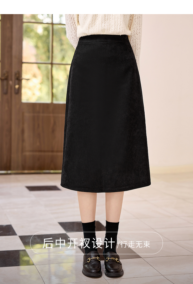 【年终特卖】熙世界黑色毛呢半身裙中长款通勤后开叉a字直筒裙2025秋冬新款