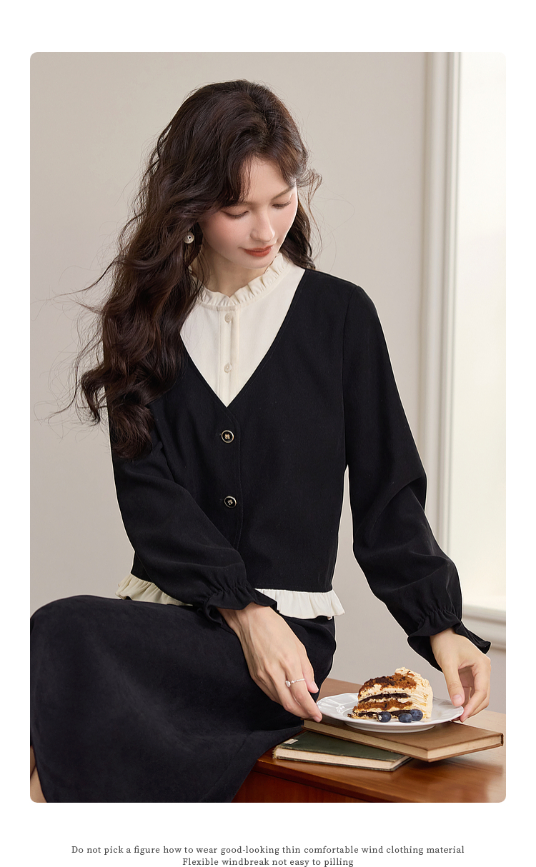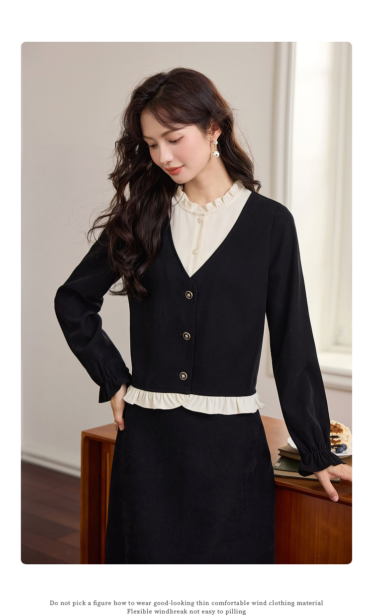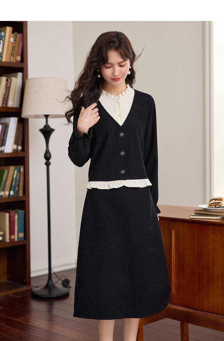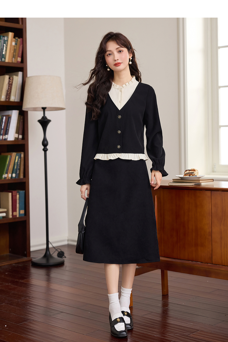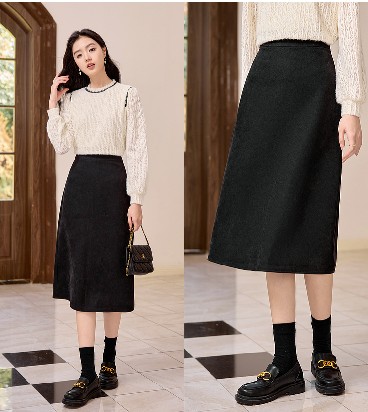 【年终特卖】熙世界黑色毛呢半身裙中长款通勤后开叉a字直筒裙2025秋冬新款