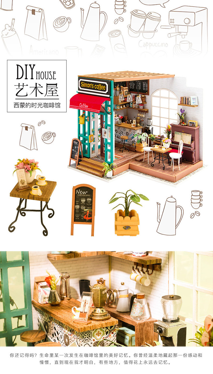 DIY小屋3D立体拼图拼板创意礼物手工拼装咖啡店生日礼物