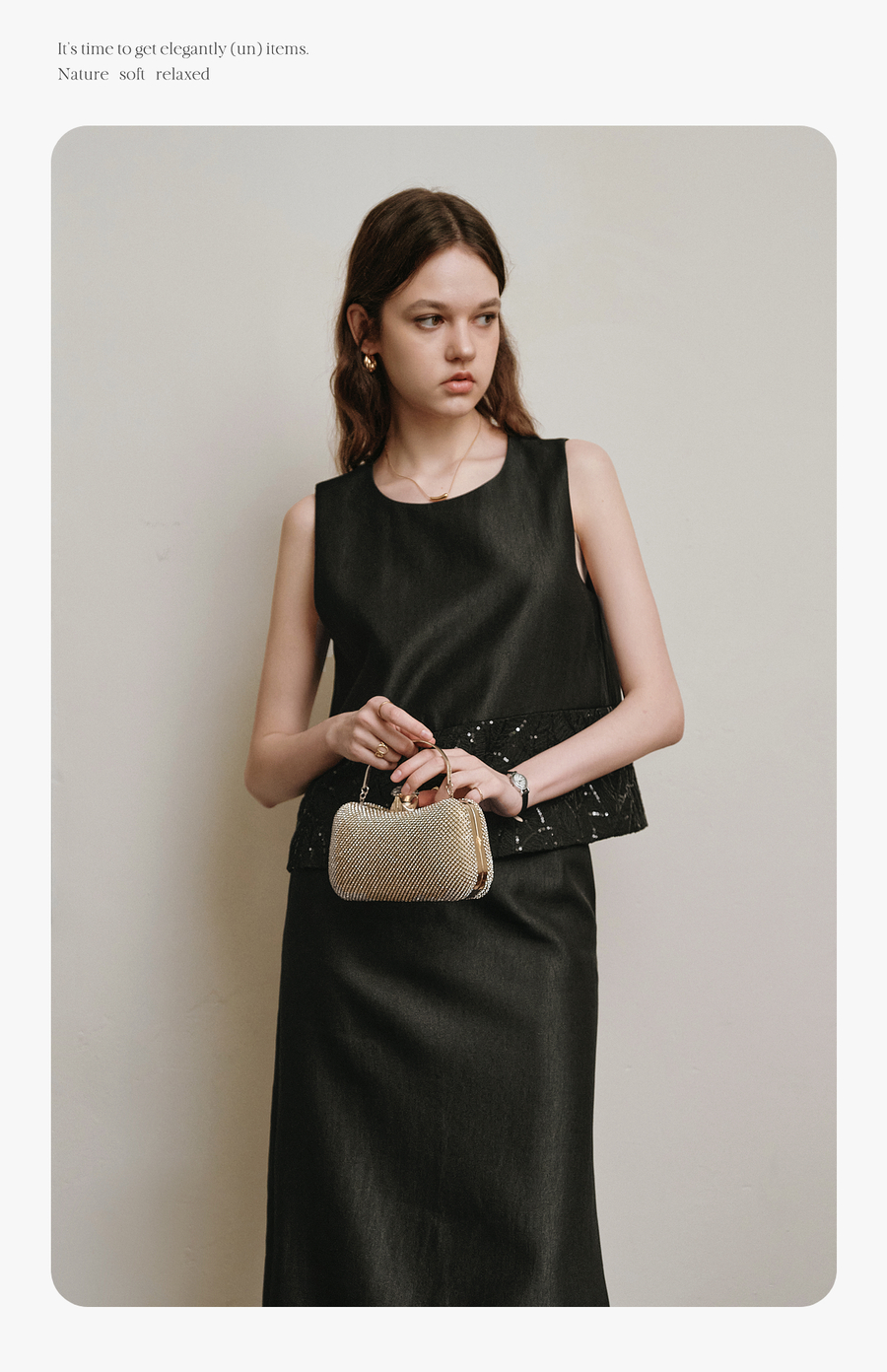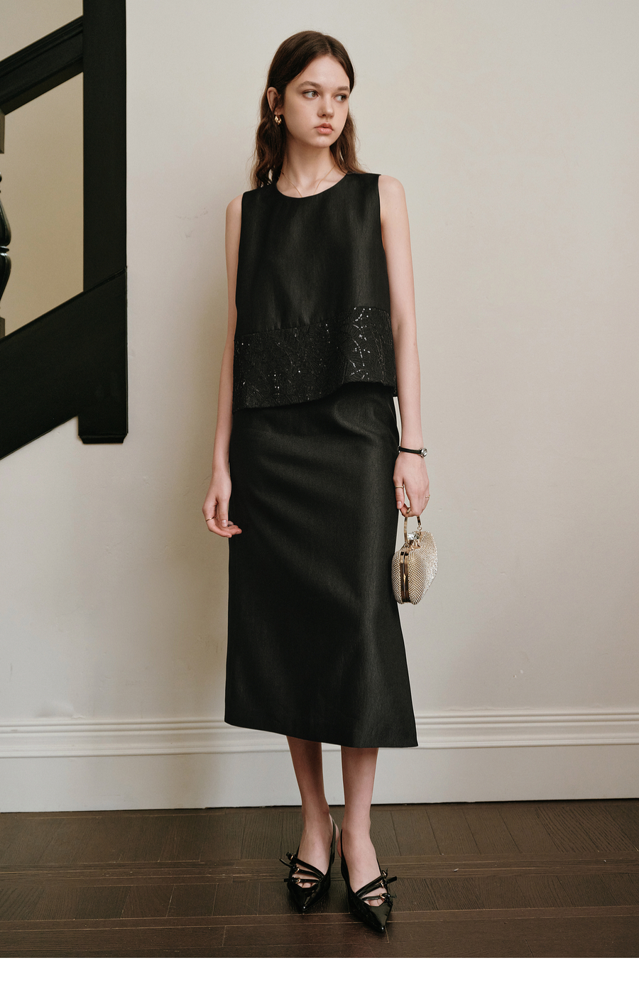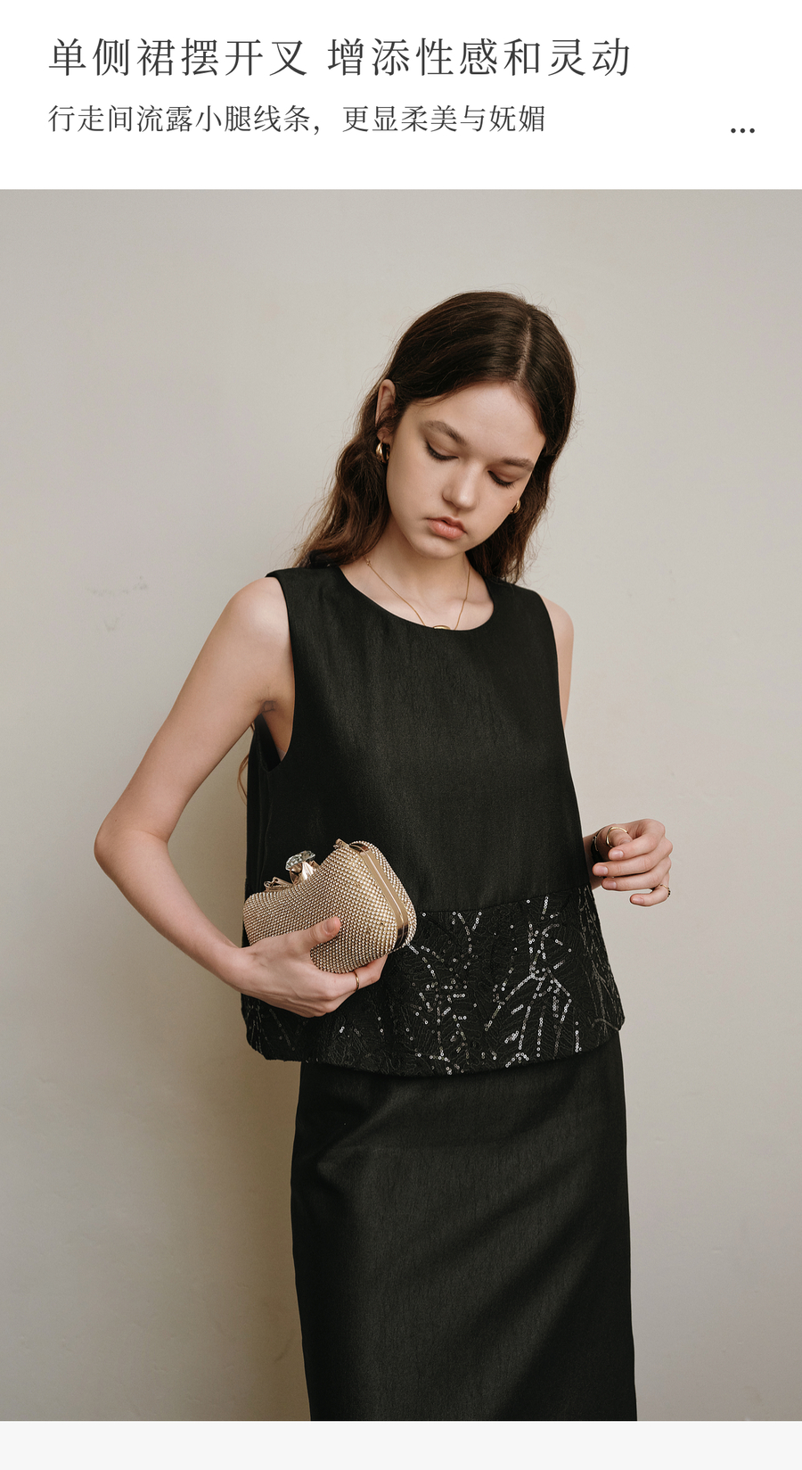 OLrain欧芮儿2025夏季新款黑色拼接亮片高阶感半裙套装时尚两件套
