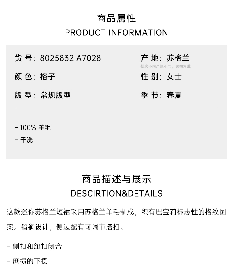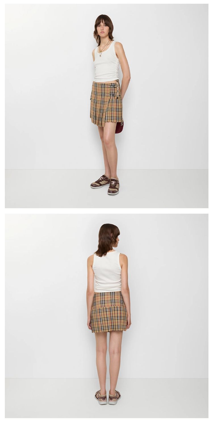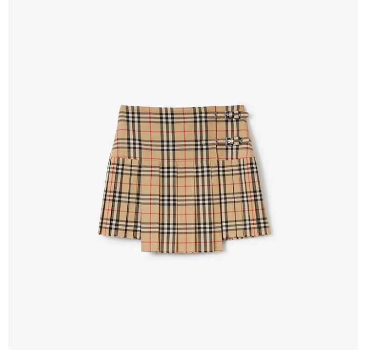 【二】BURBERRY 巴宝莉 女士褶裥格纹羊毛迷你裙 格子 8025832 A7028