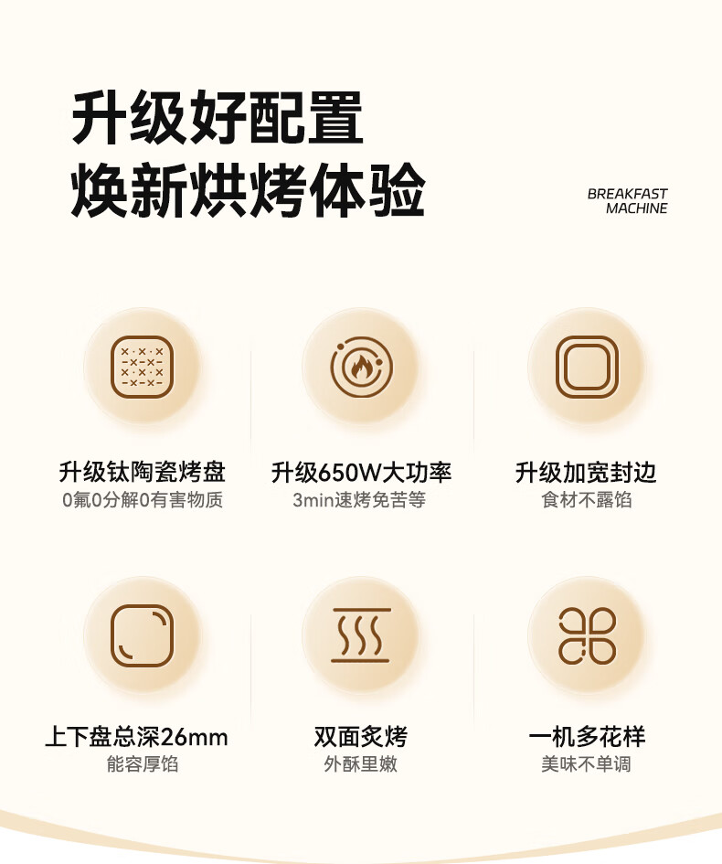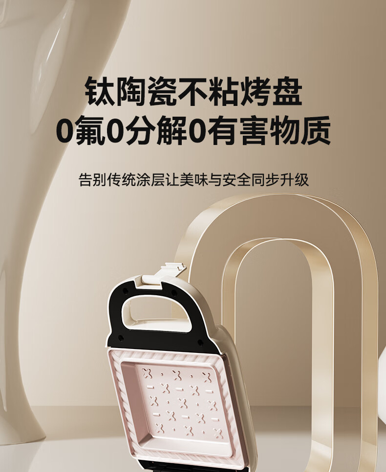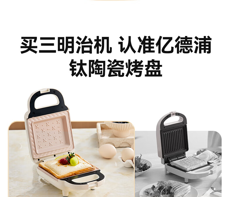 【秒杀】亿德浦(YIDPU)三明治机钛陶瓷早餐机(单盘)