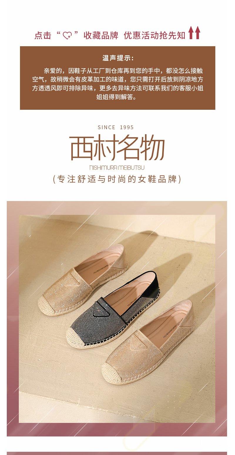 西村名物2022年春季新款百搭通勤编织水钻深口渔夫鞋女单鞋T22AM19851