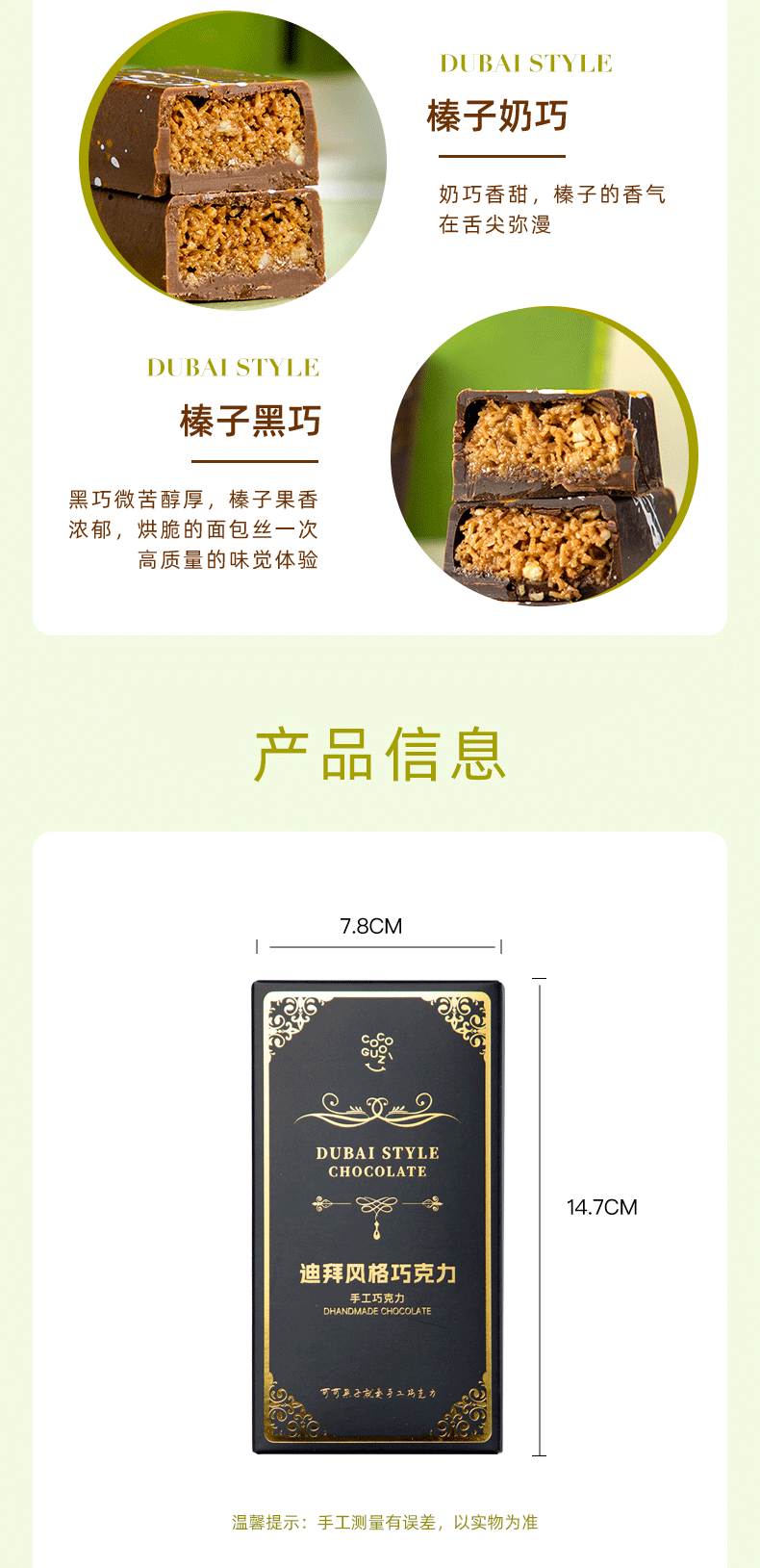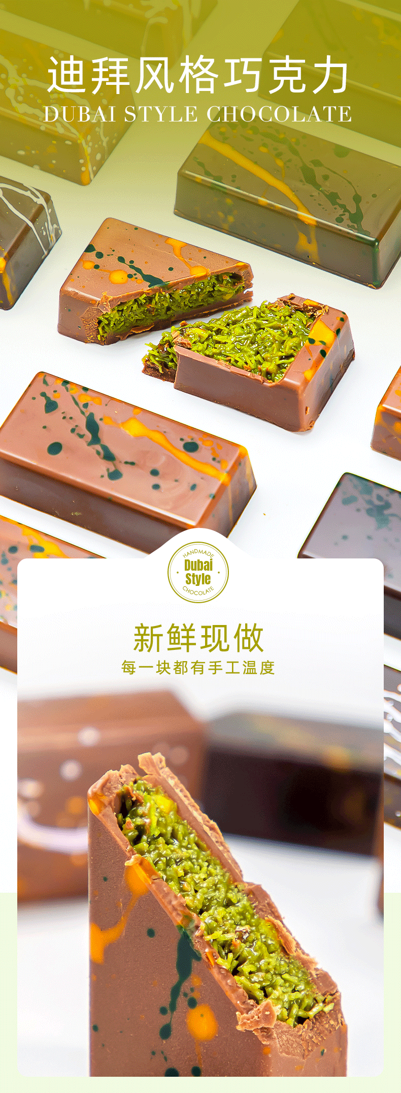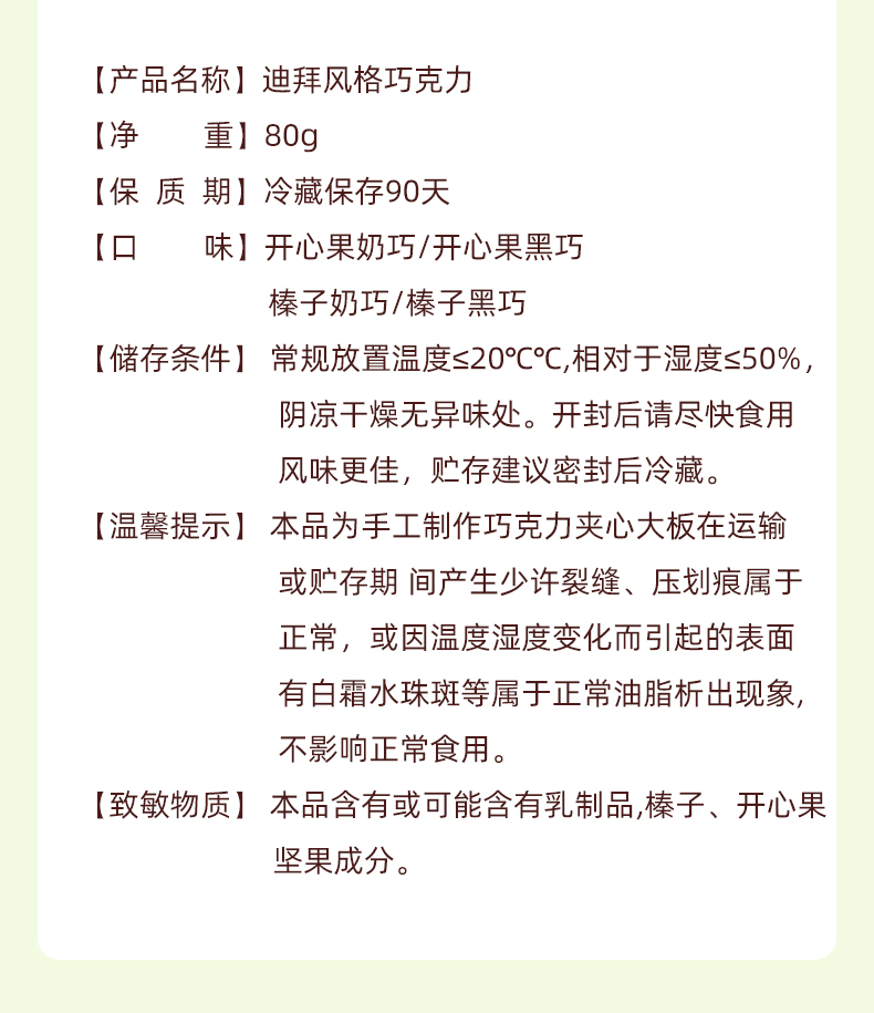 【分仓直发包邮】迪拜风格手工巧克力80g(黑巧开心果)