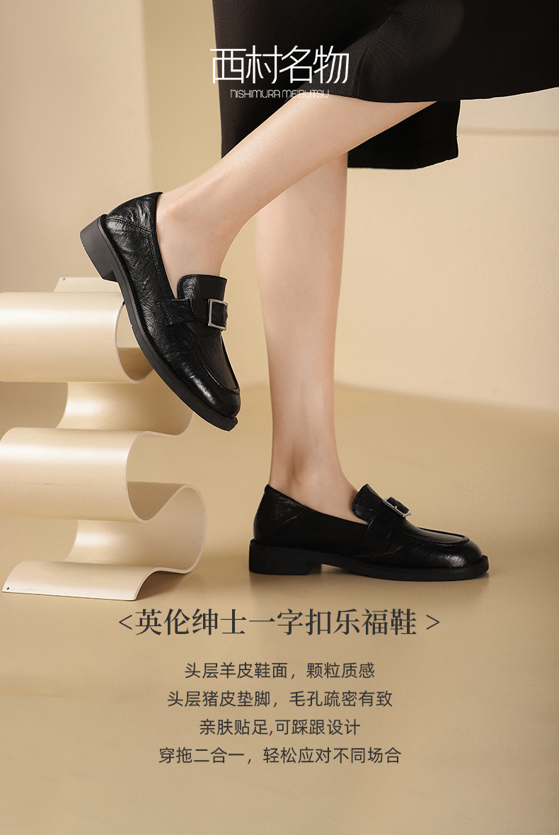 西村名物2024春季新品真皮休闲英伦风一字扣乐福鞋小皮鞋T24AM11251