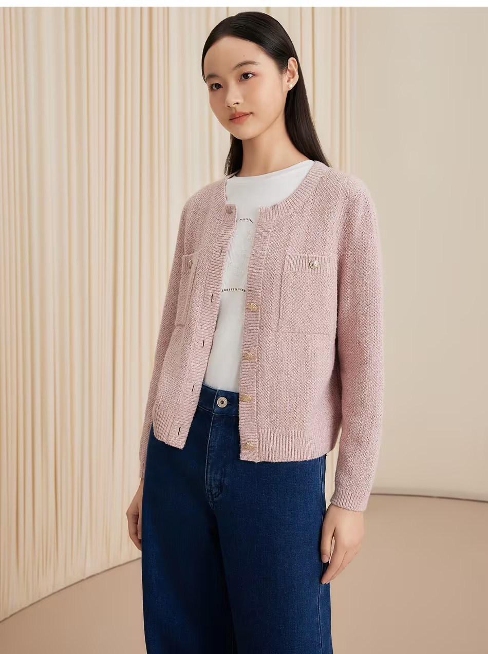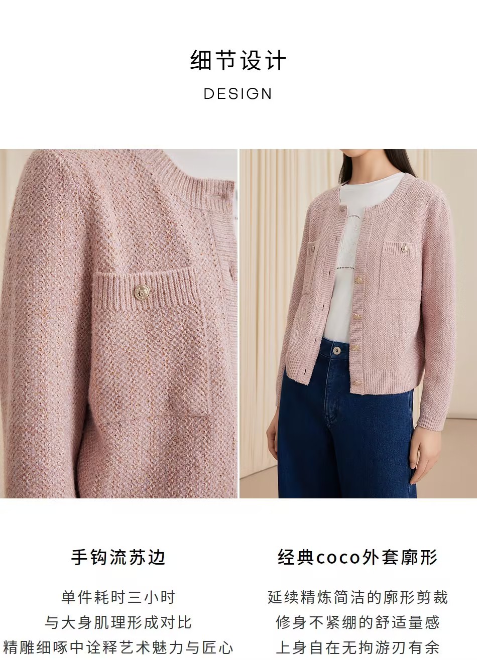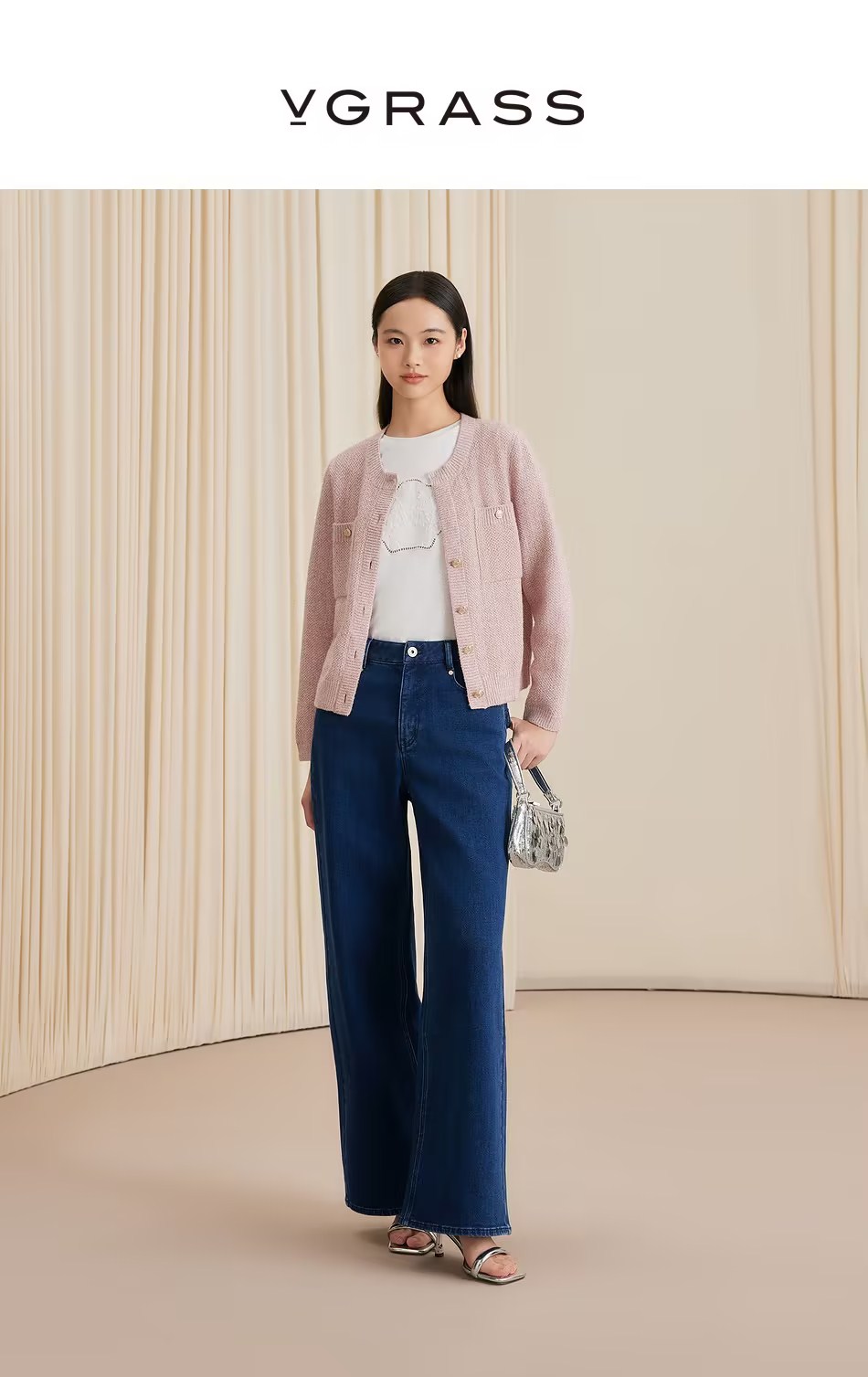 VGRASS维格娜丝24年秋季手钩流苏花边针织开衫