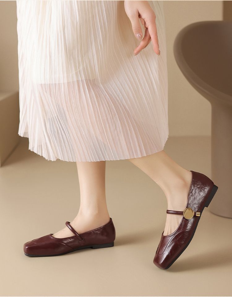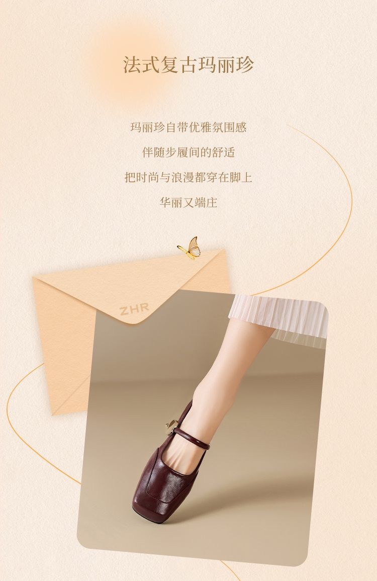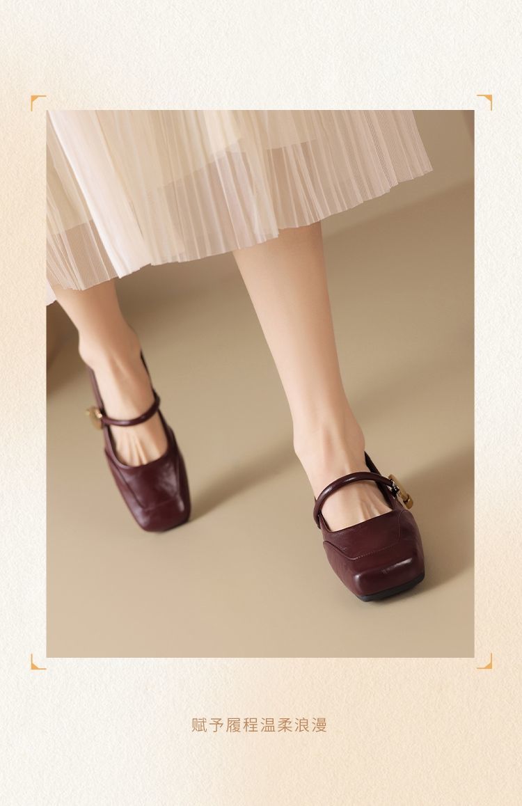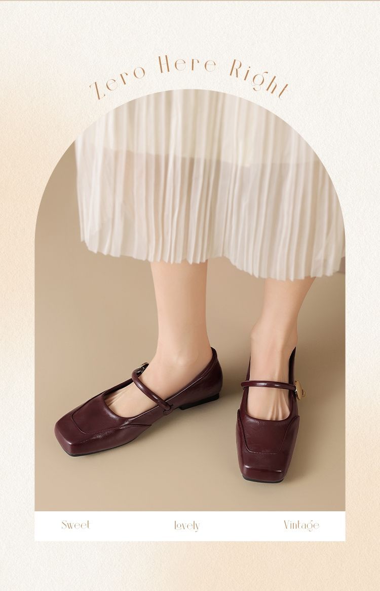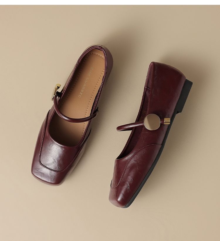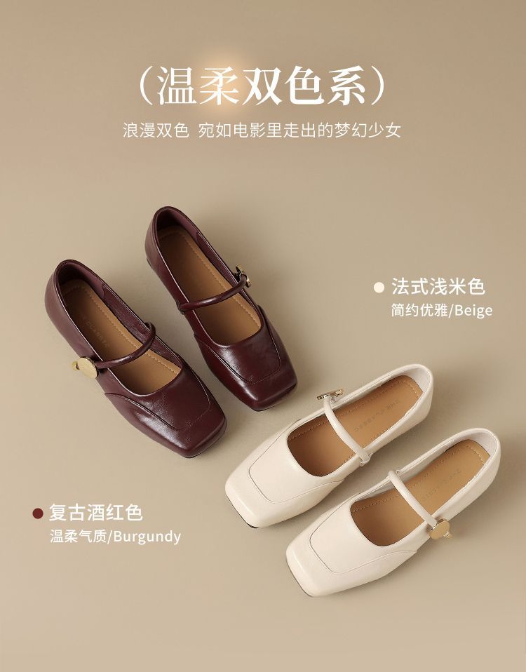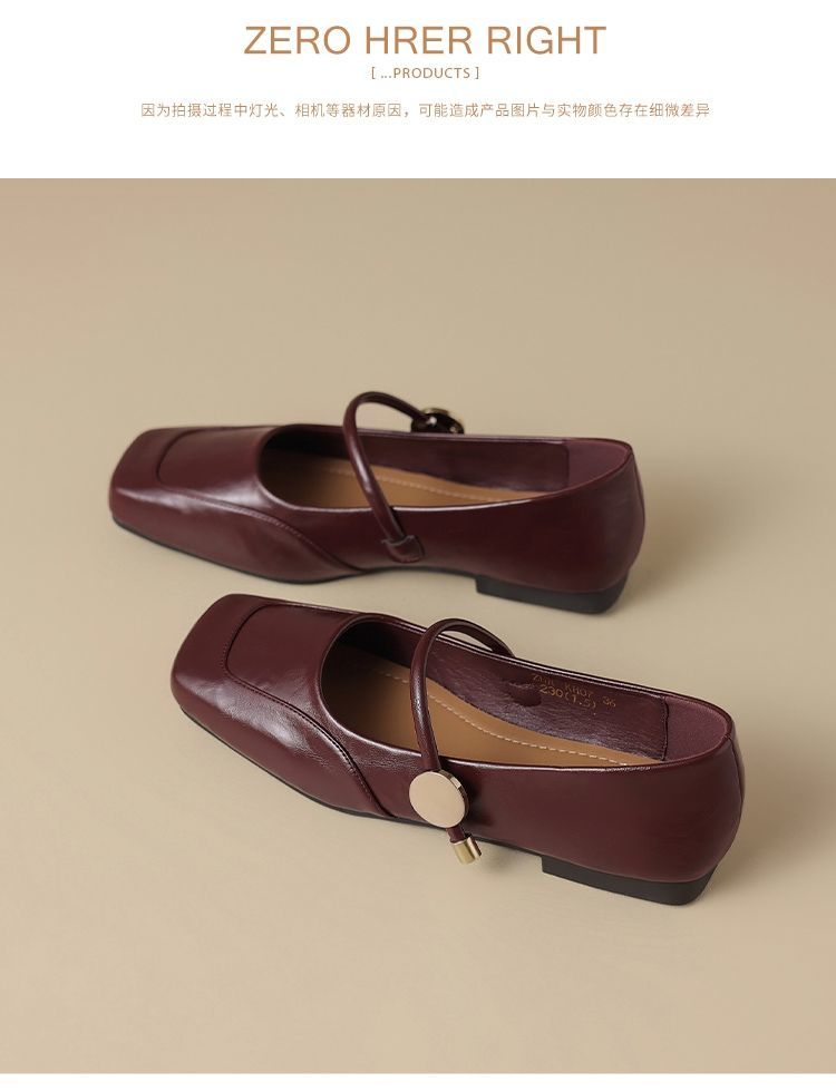 ZHR则则方头酒红浅口单鞋2025新款法式玛丽珍鞋复古一字带平底鞋