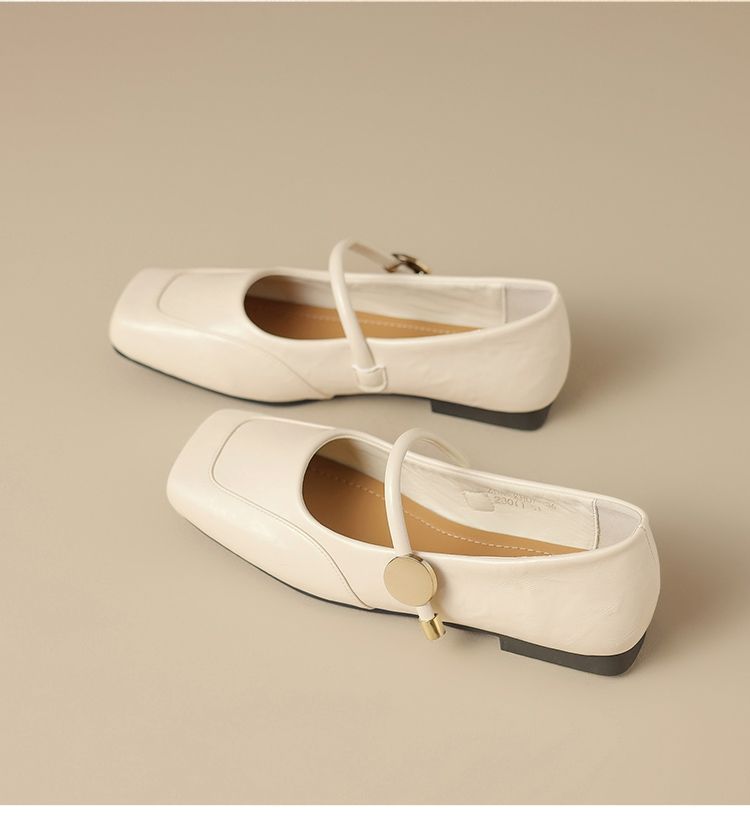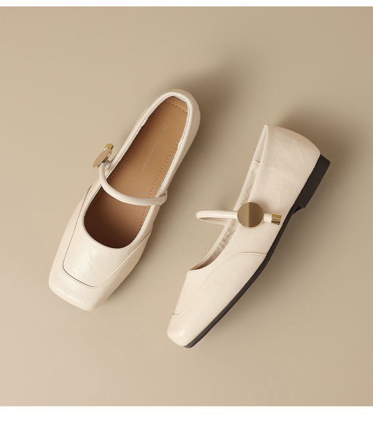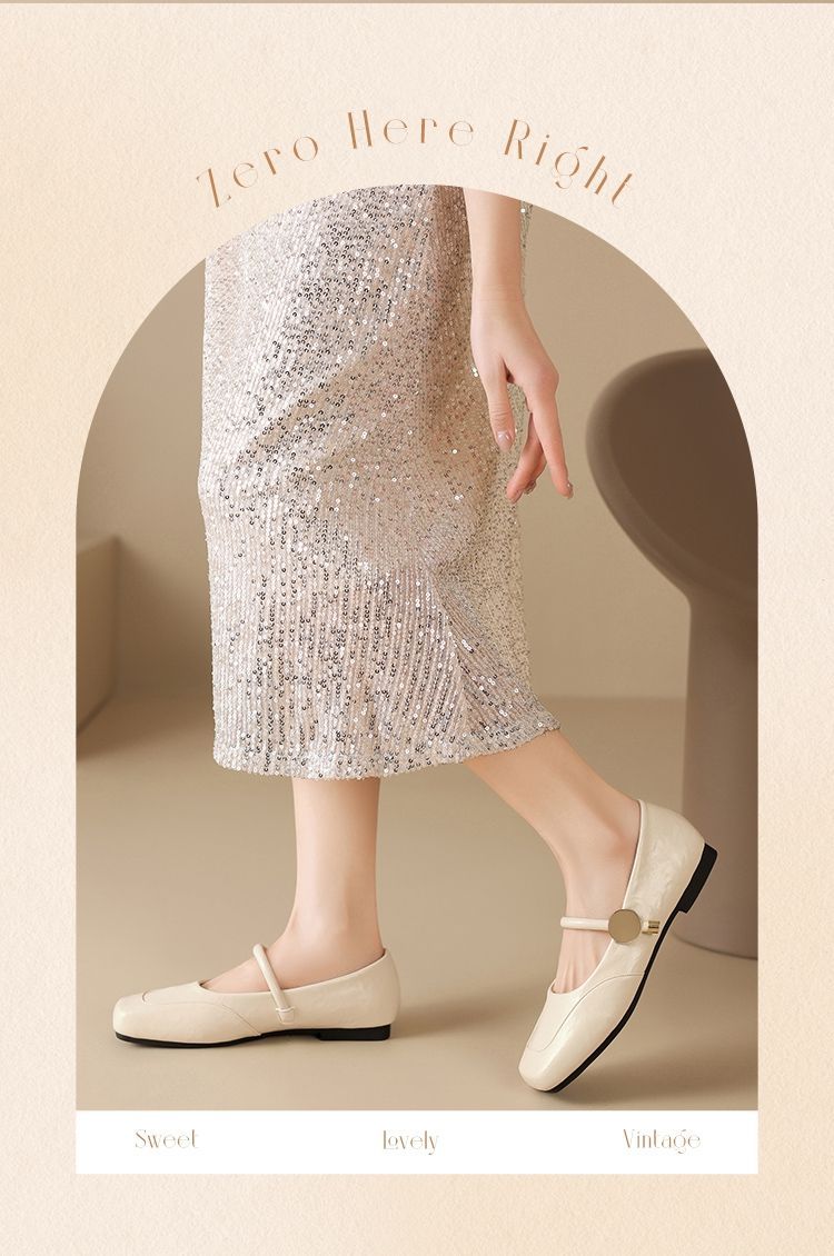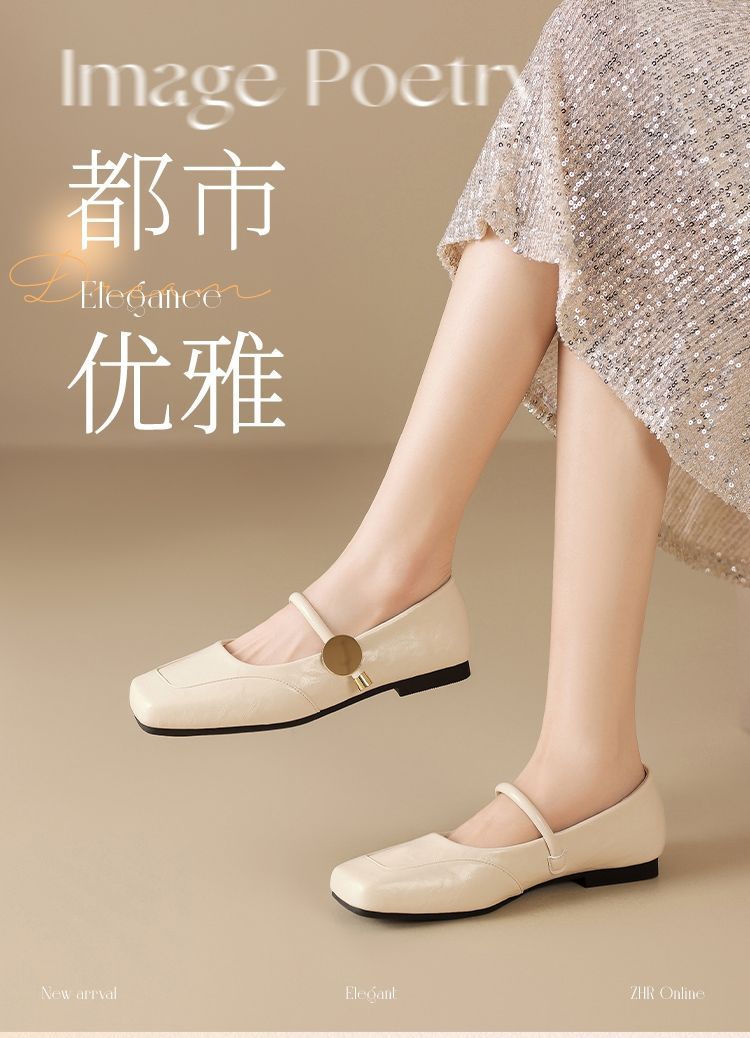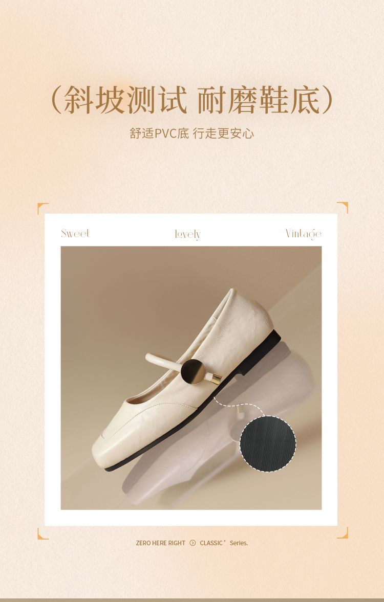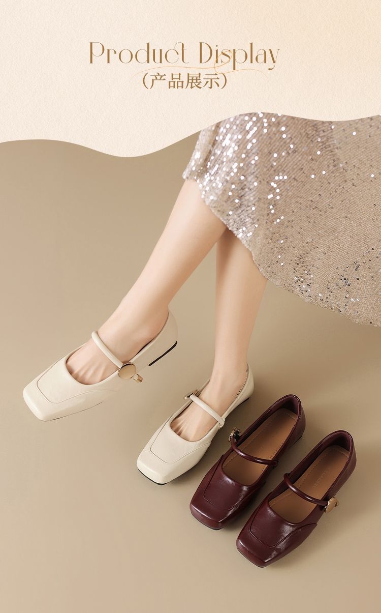 ZHR则则方头酒红浅口单鞋2025新款法式玛丽珍鞋复古一字带平底鞋