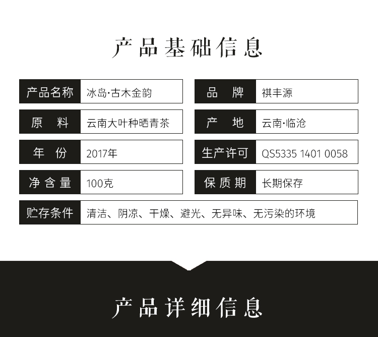 普洱生茶丨祺丰源 2017年 冰岛·古木金韵 100克/饼