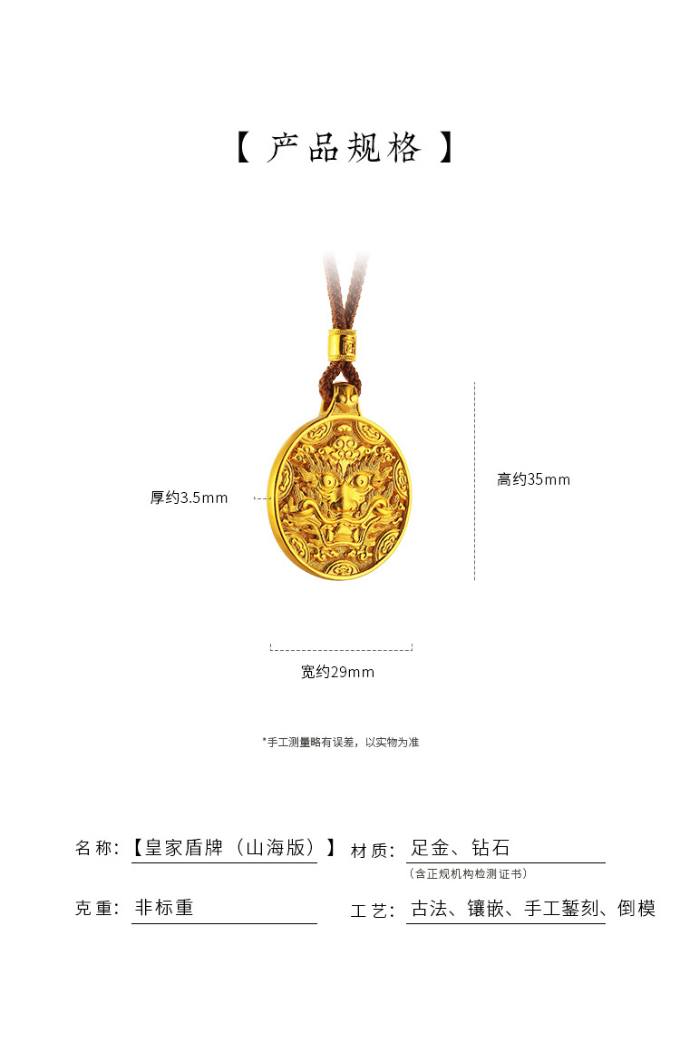 宫匠造办 皇家盾牌山海版黄金吊坠