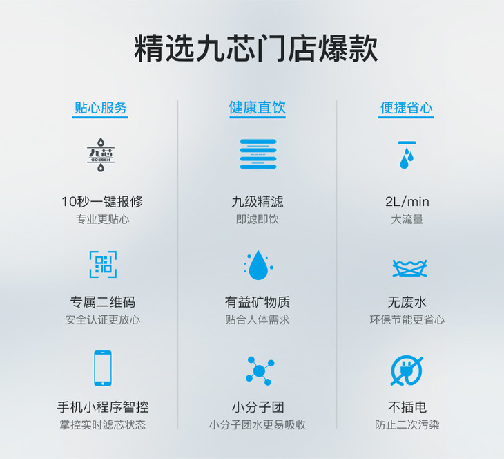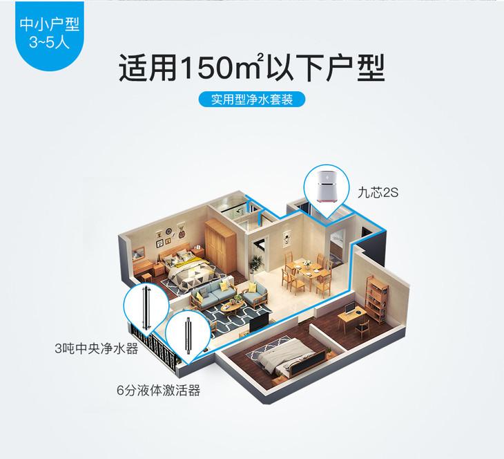 九芯 新6分全屋净水系统 3.8吨中央处理器 智能净水器家用管道井水自来水大流量前置过滤器超滤直饮机