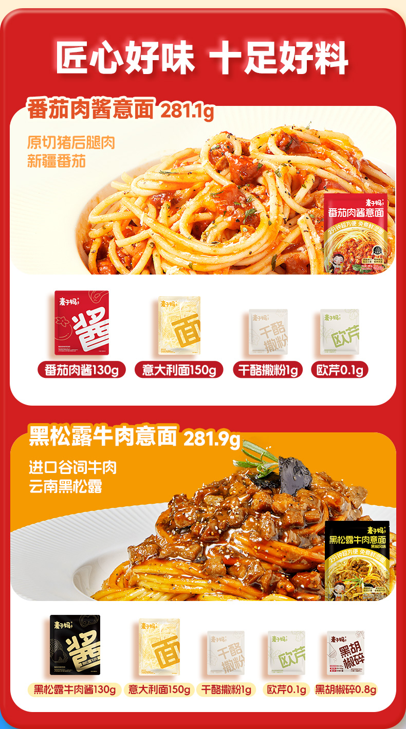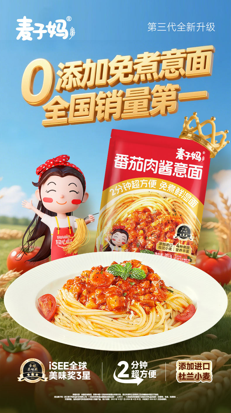 麦子妈 免煮 0添加 番茄肉酱意面方便速食2分钟出大餐
