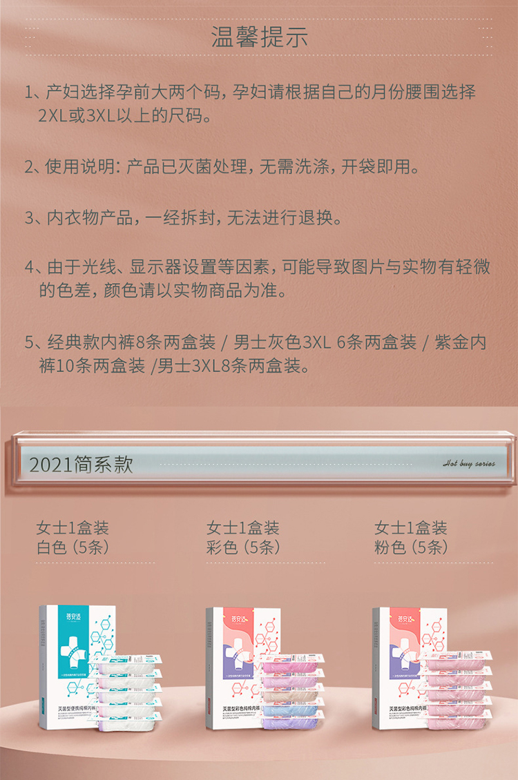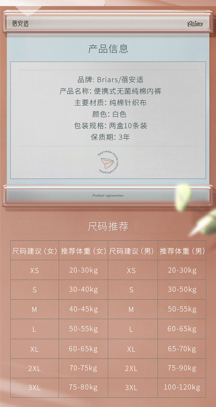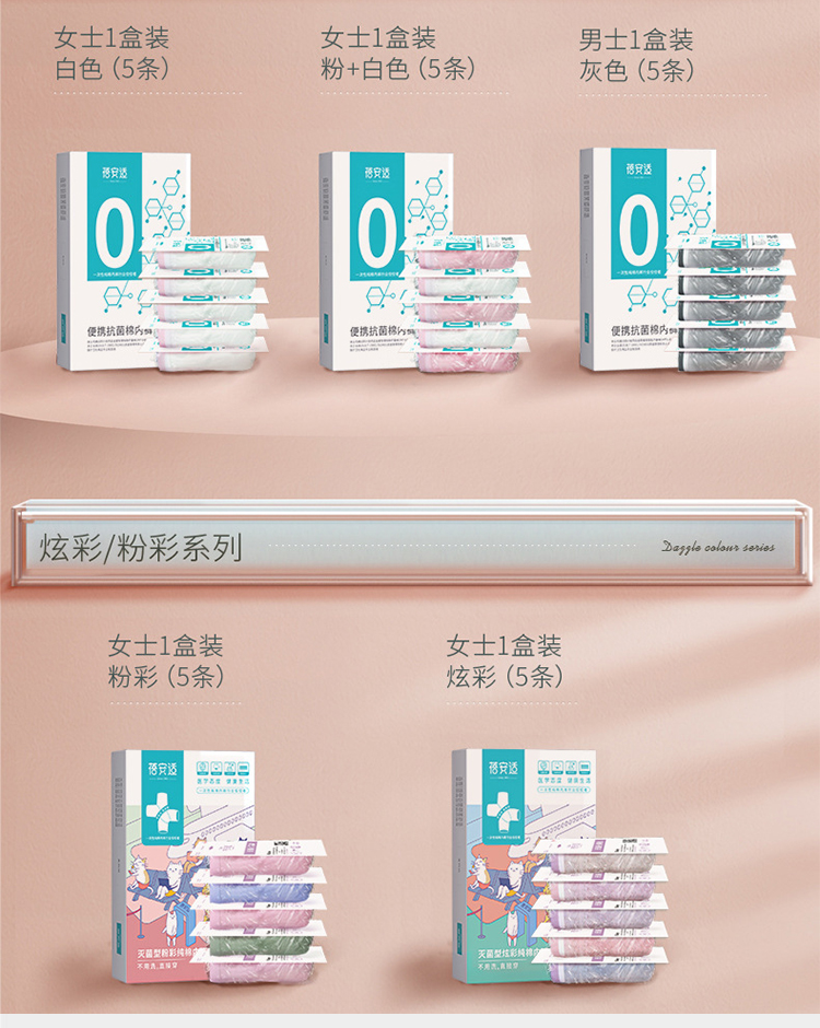 【一次性5条内裤纯棉】 全棉户外旅行内裤独立包装 男女短裤旅游免洗内裤