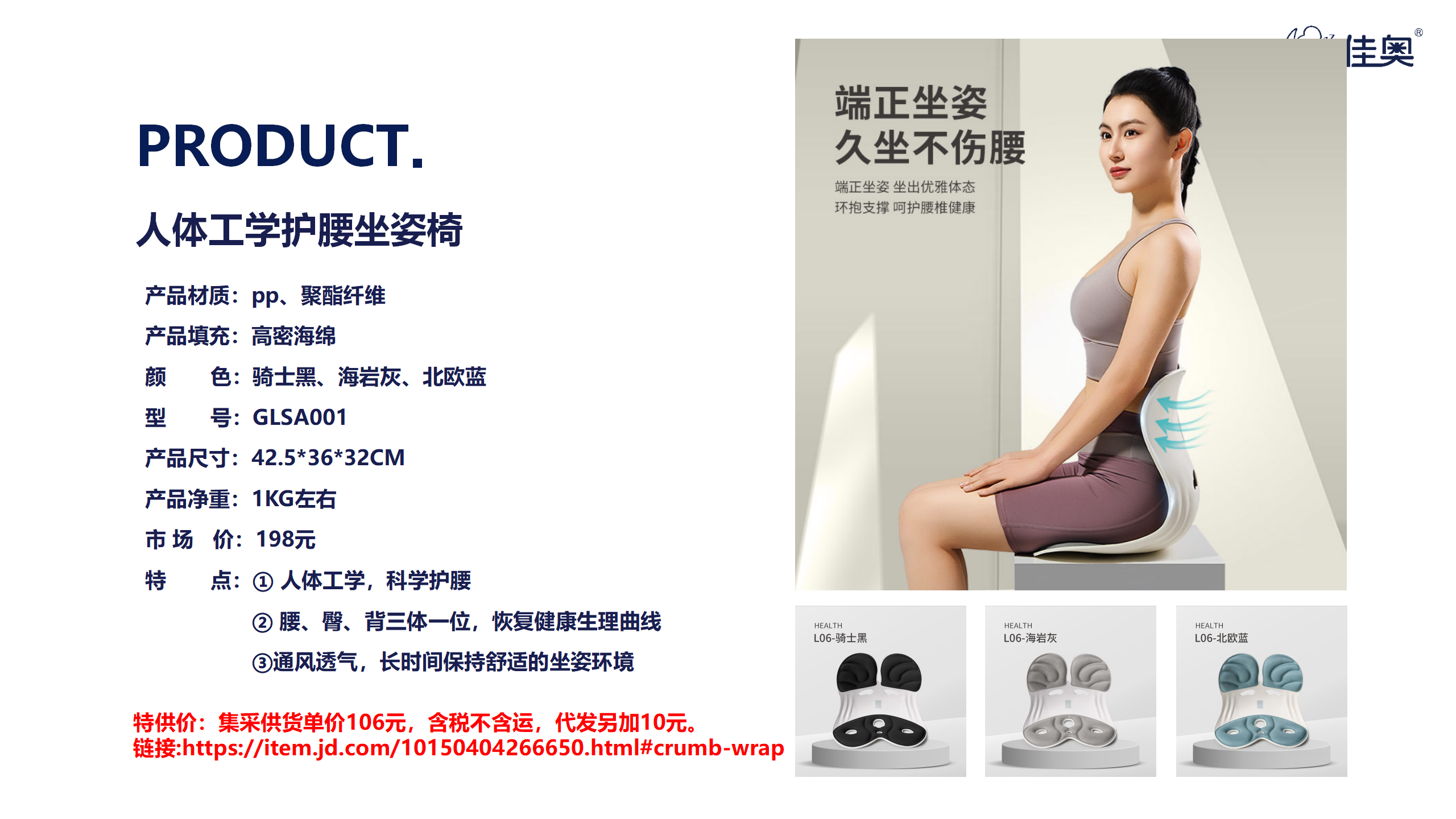 佳奥人体工学护腰坐姿椅