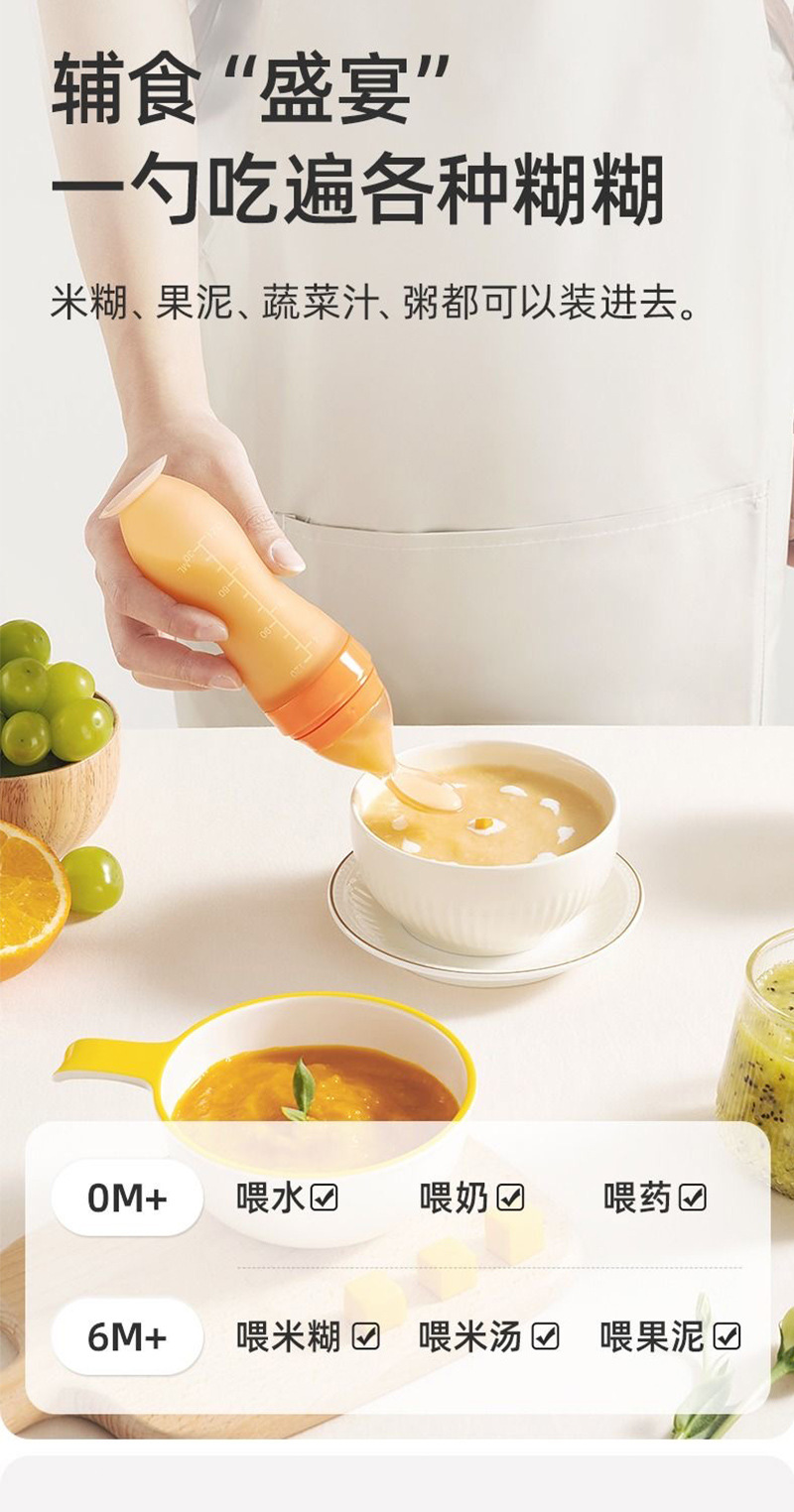 婴儿米糊软勺奶瓶挤压式喂养硅胶宝宝辅食米粉喂食神器