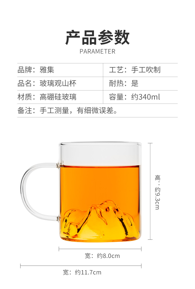 雅集玻璃杯观山杯340ml(把手款-透明)