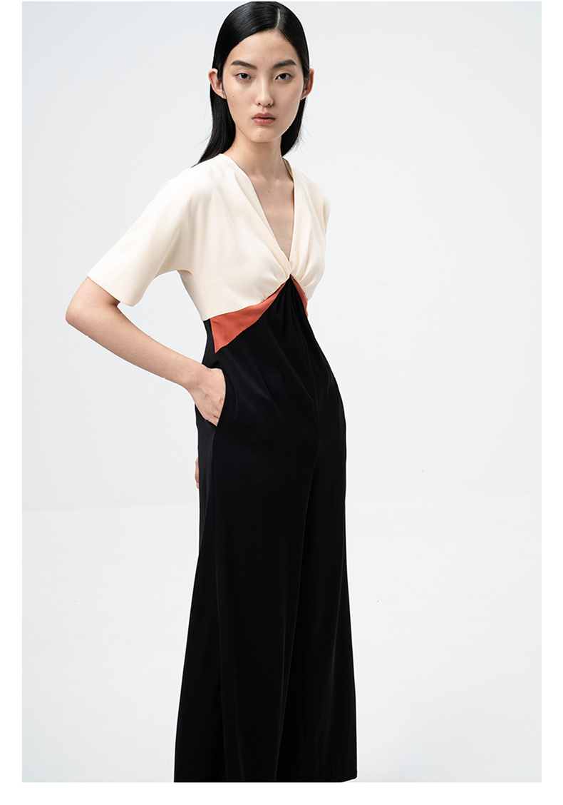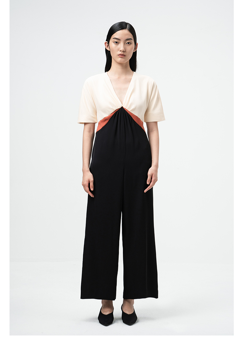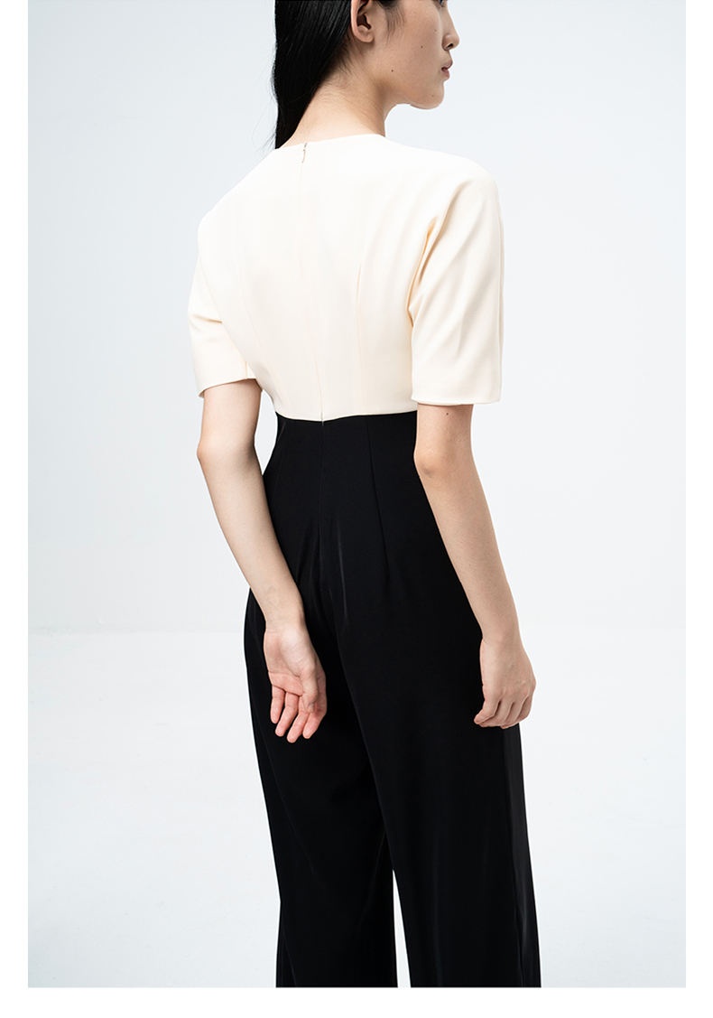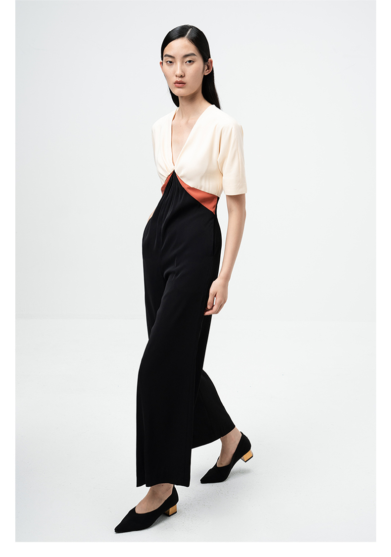 AtelierMissLu—黑白橘撞色高腰连体裤/0000053