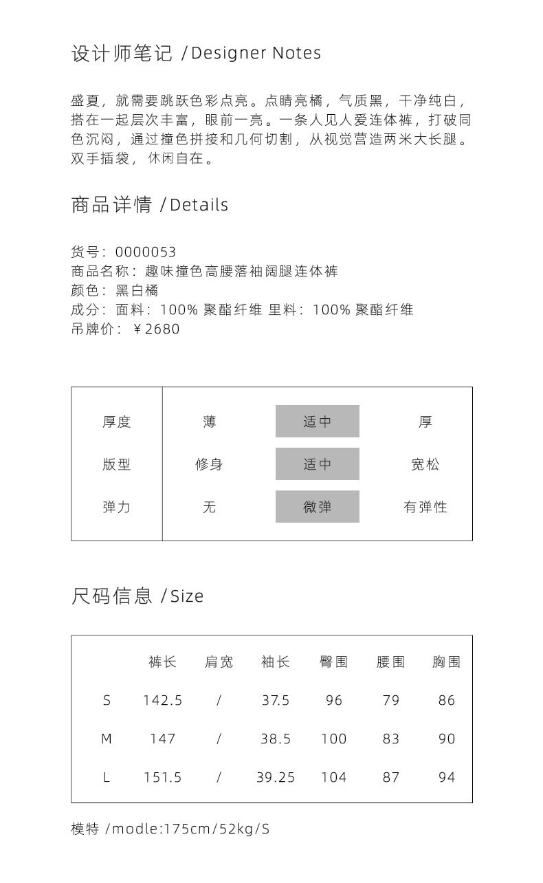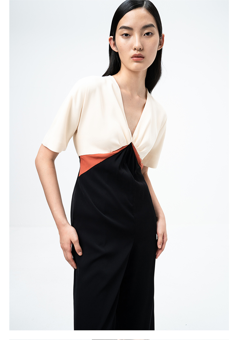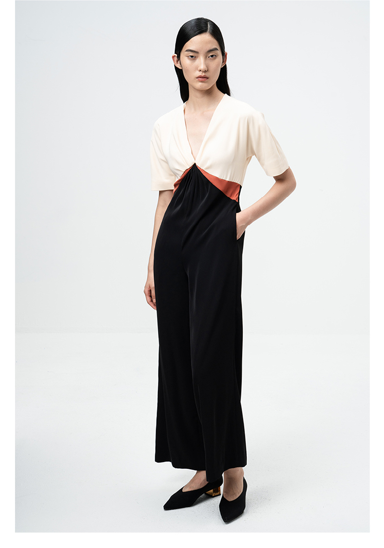 AtelierMissLu—黑白橘撞色高腰连体裤/0000053