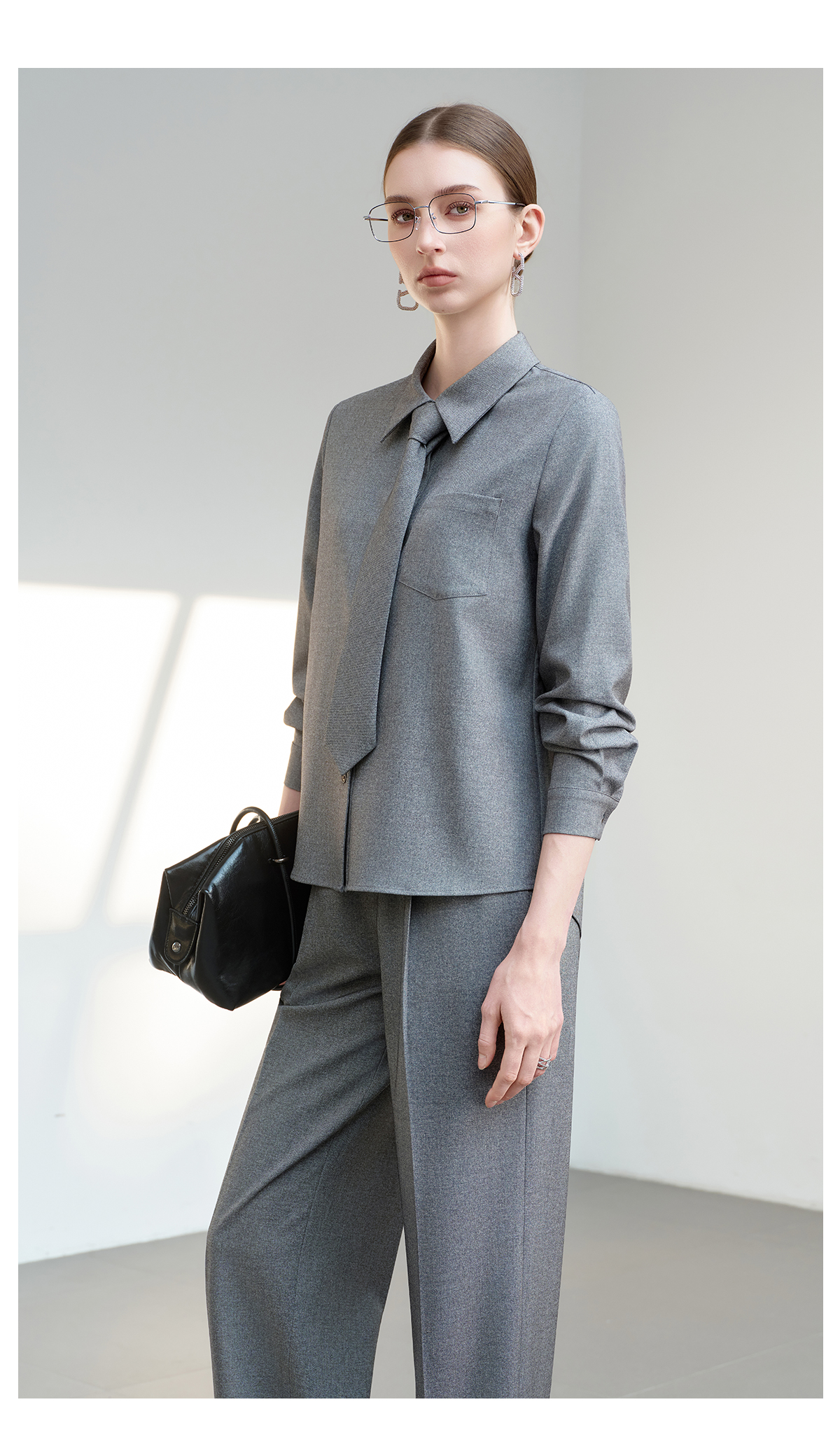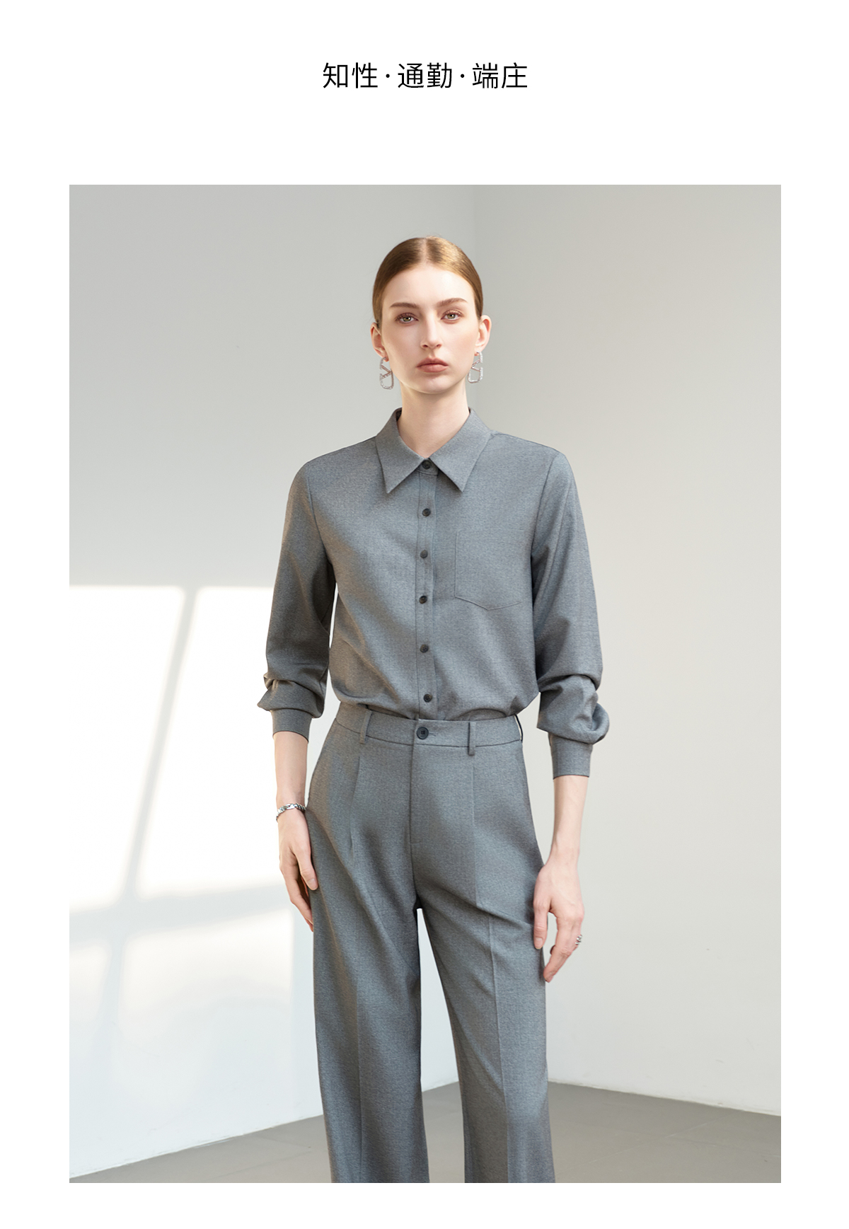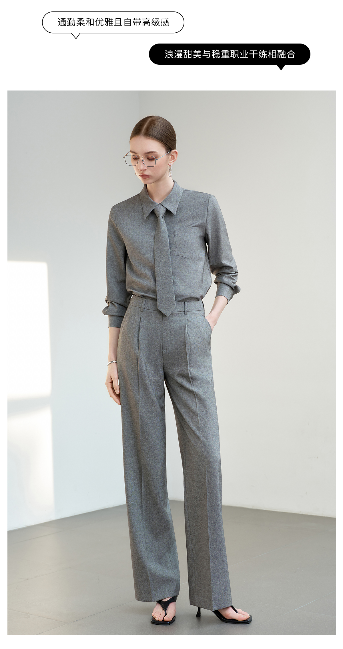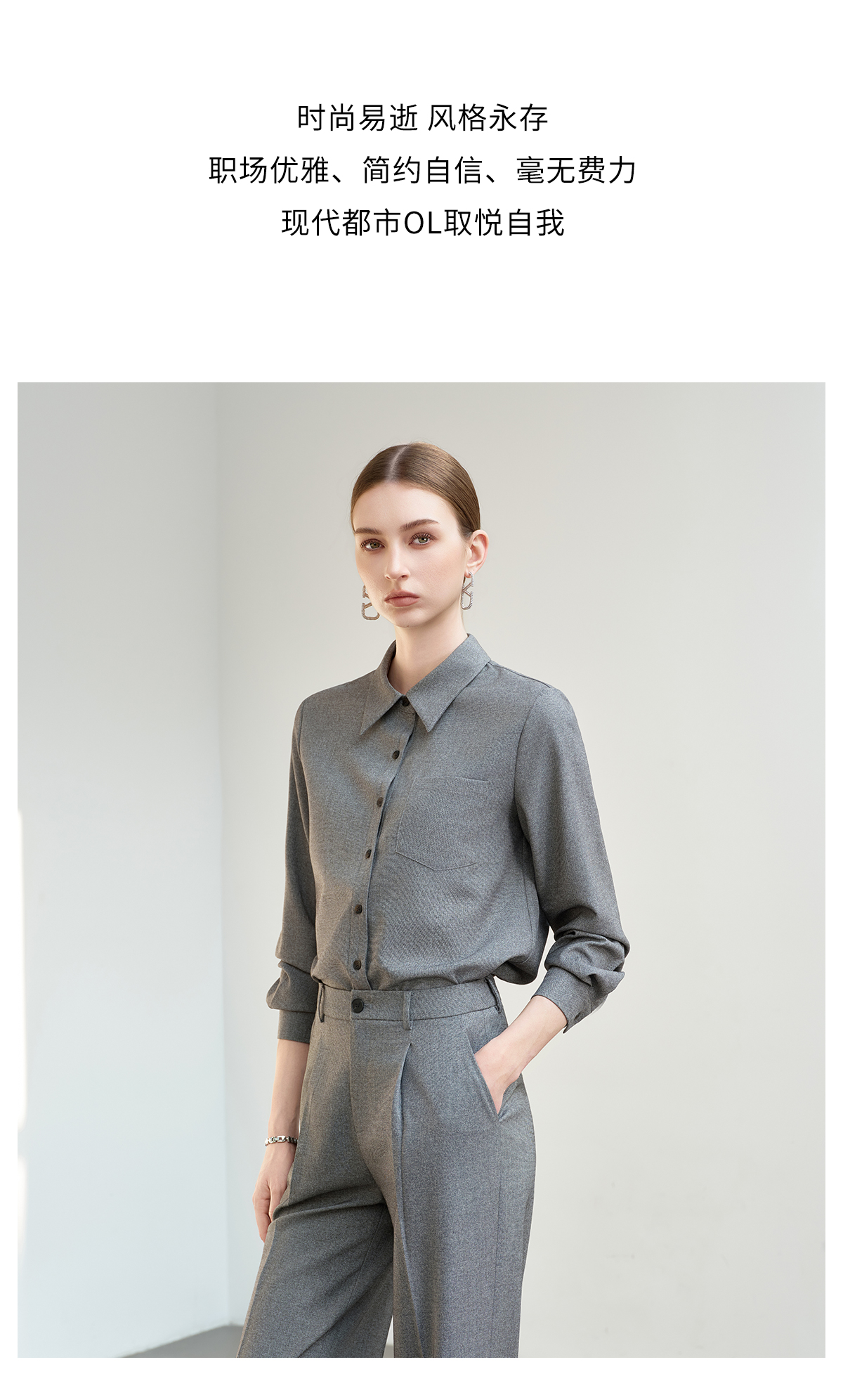 IWY/薄暮灰色【轻商务精英风】通勤优雅衬衫阔腿裤套装出差懒人穿搭B602+P2745