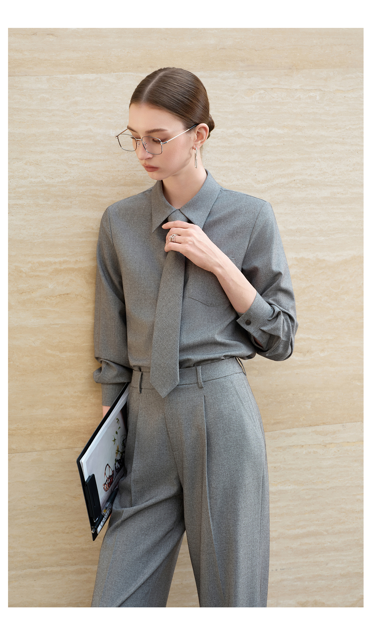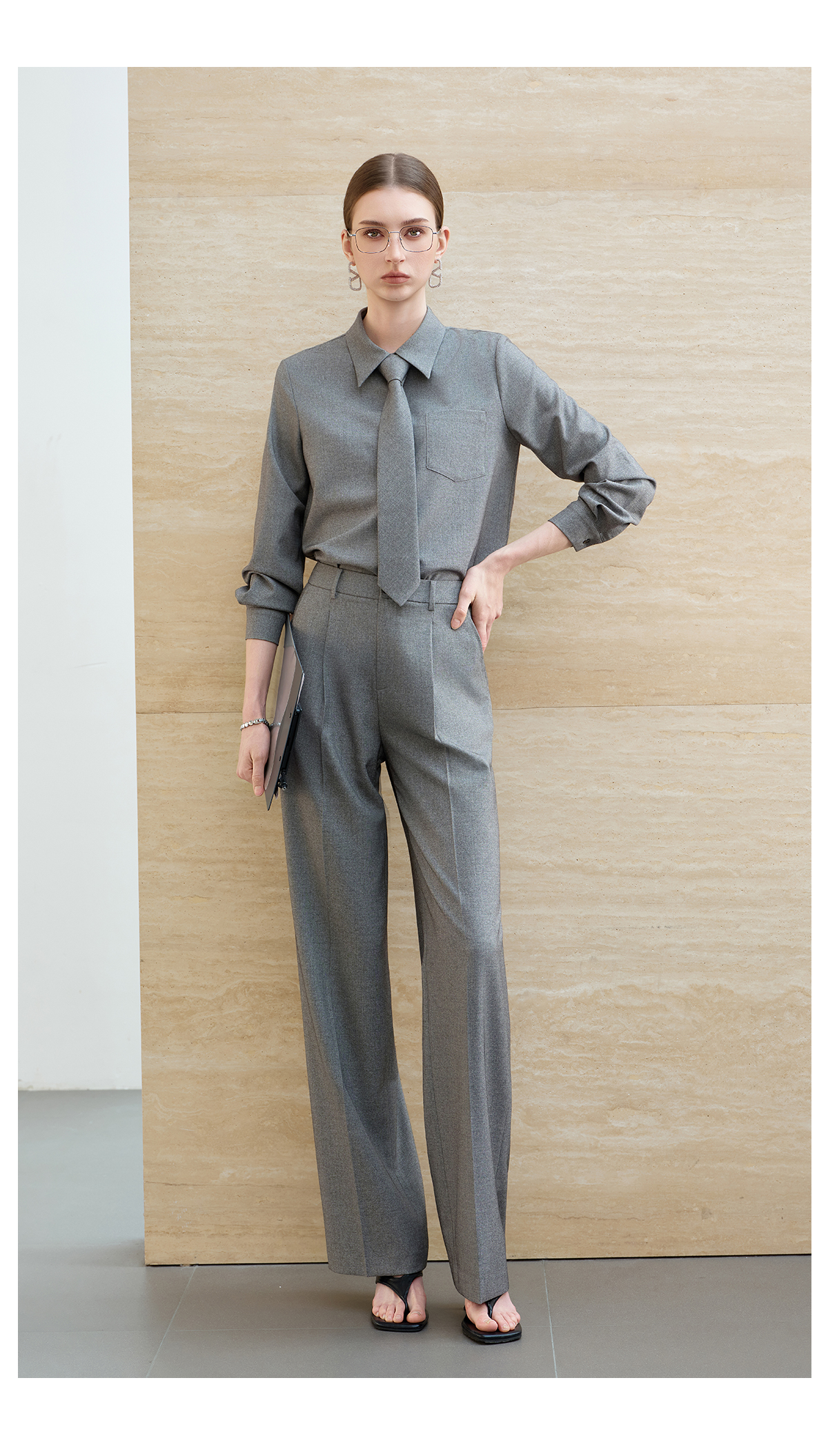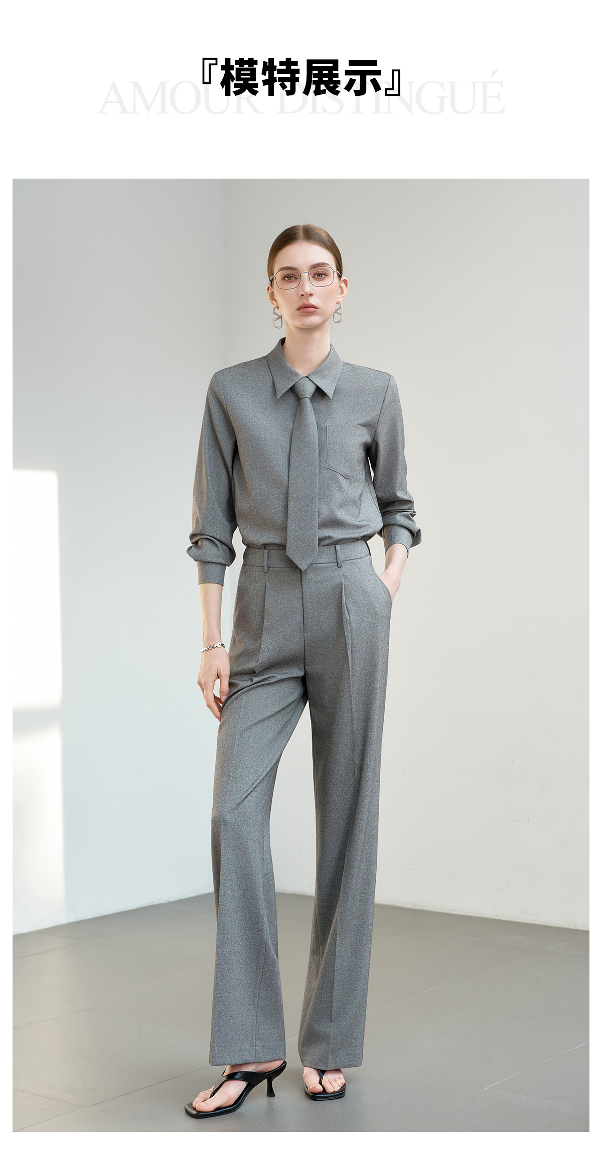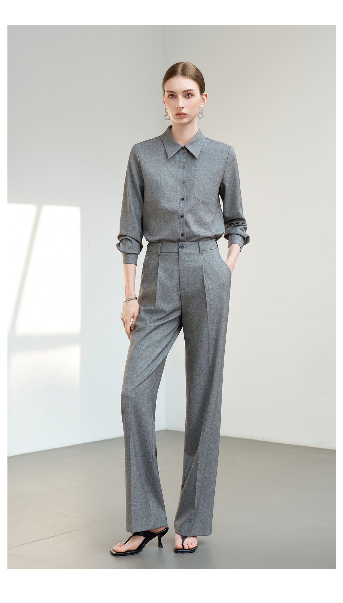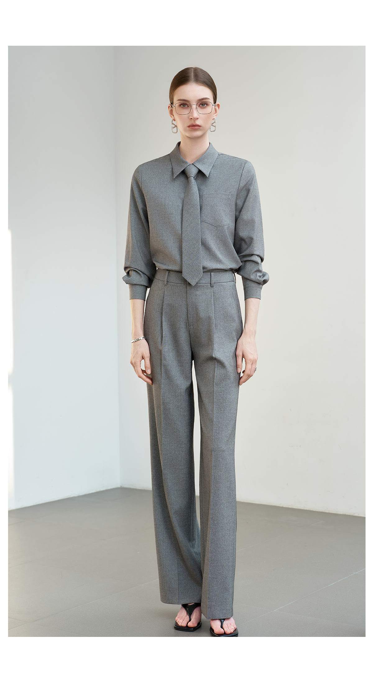 IWY/薄暮灰色【轻商务精英风】通勤优雅衬衫阔腿裤套装出差懒人穿搭B602+P2745