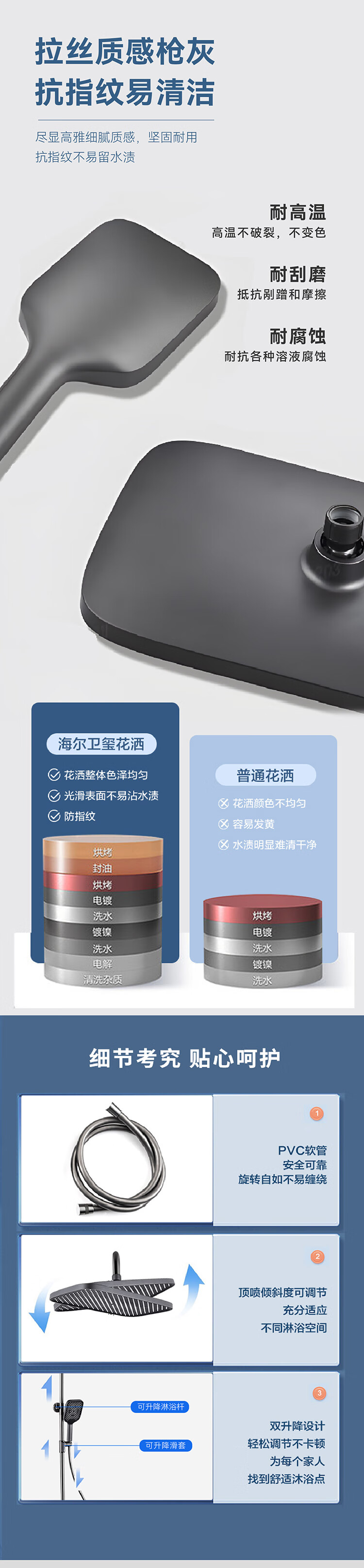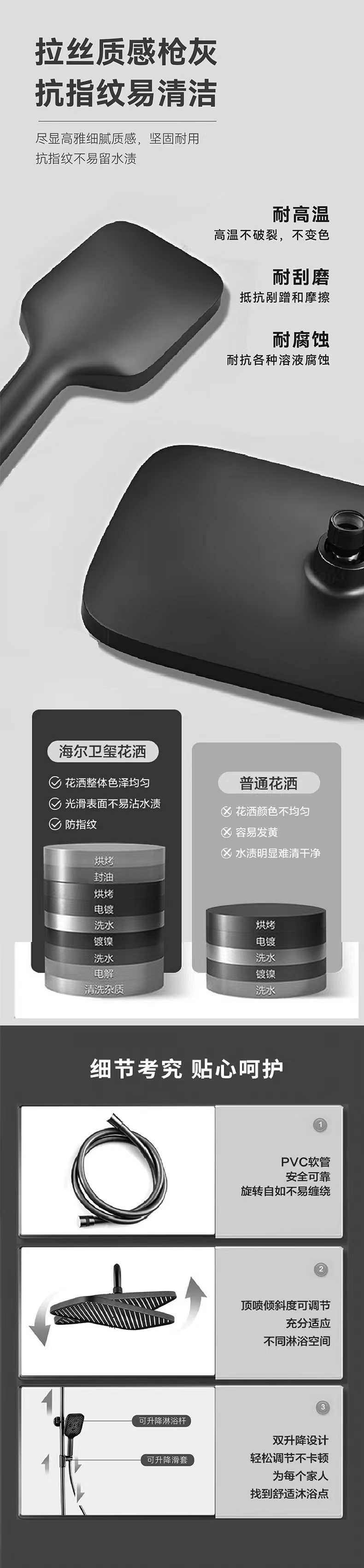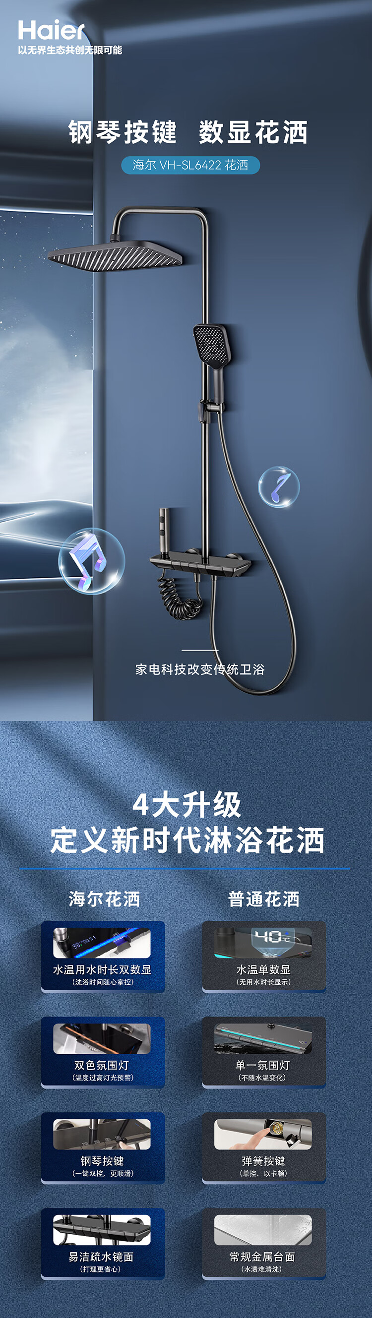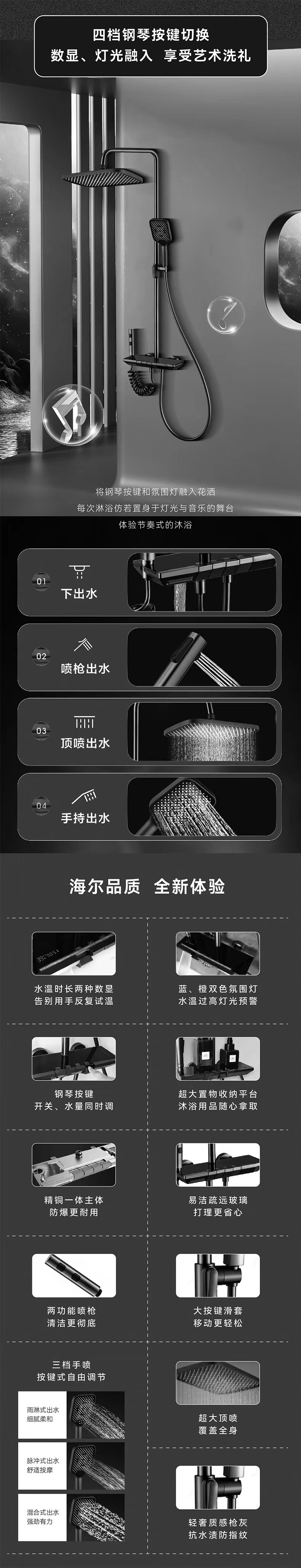 海尔调温四功能按键数显款淋浴花洒 大按键 滑套四功能钢琴按键+智能数显+灯 6422枪灰色/6421银色