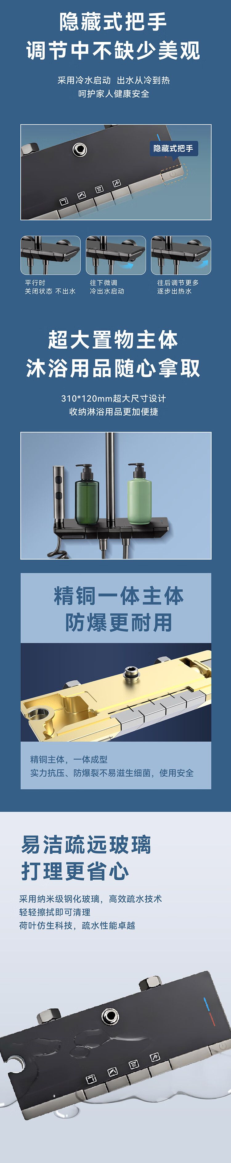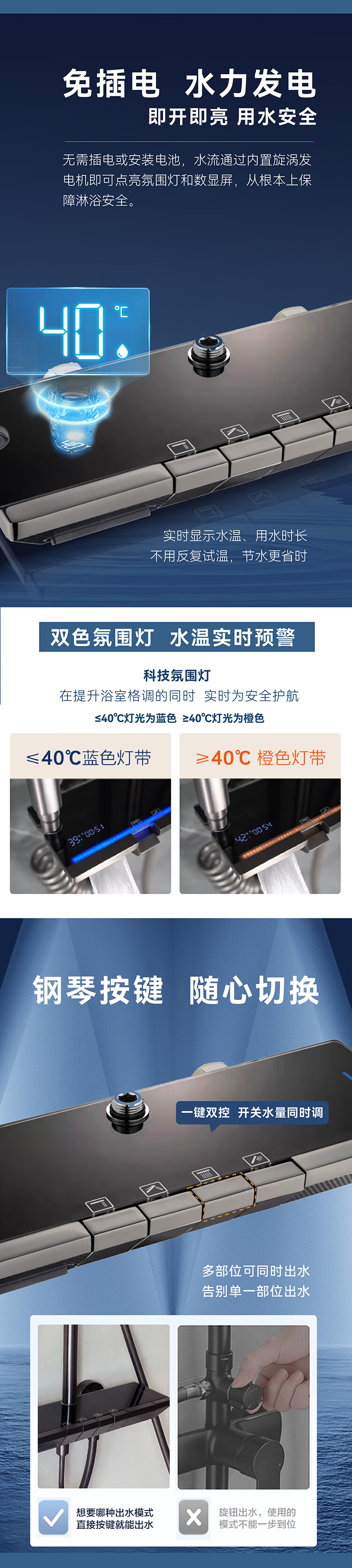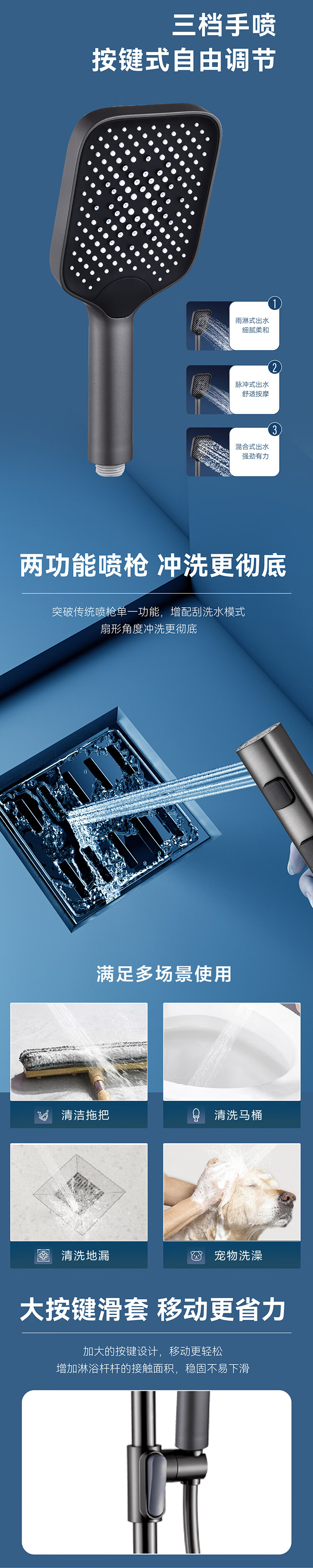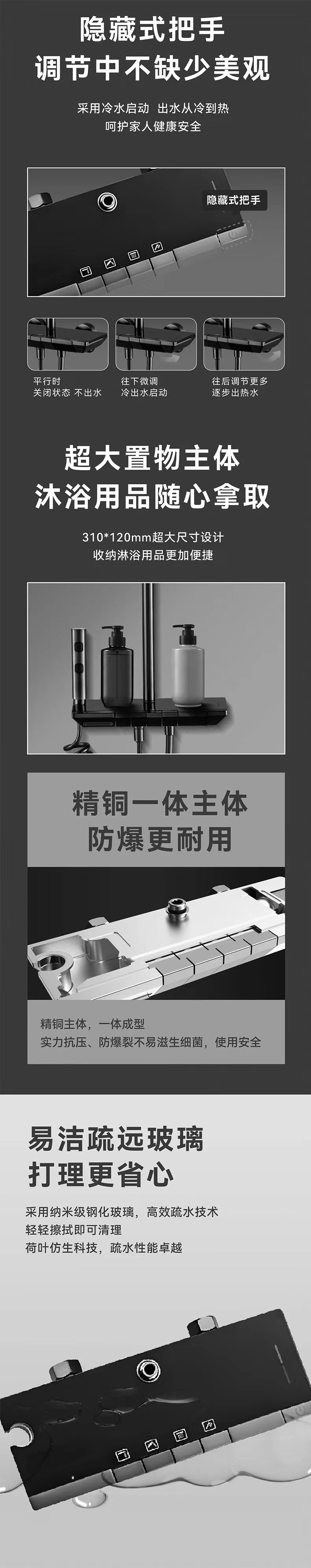海尔调温四功能按键数显款淋浴花洒 大按键 滑套四功能钢琴按键+智能数显+灯 6422枪灰色/6421银色