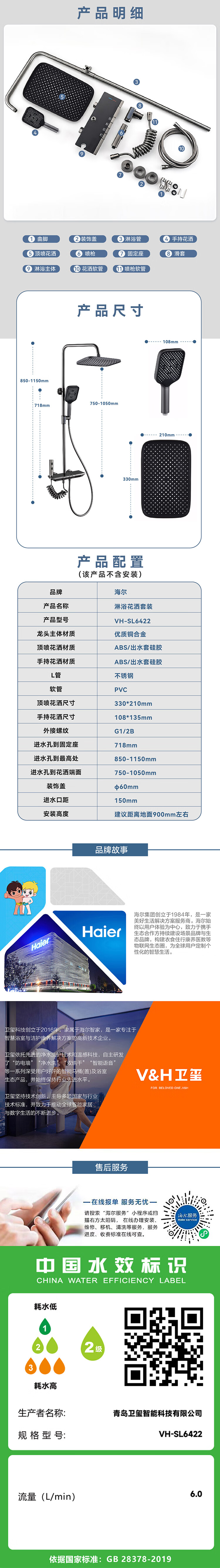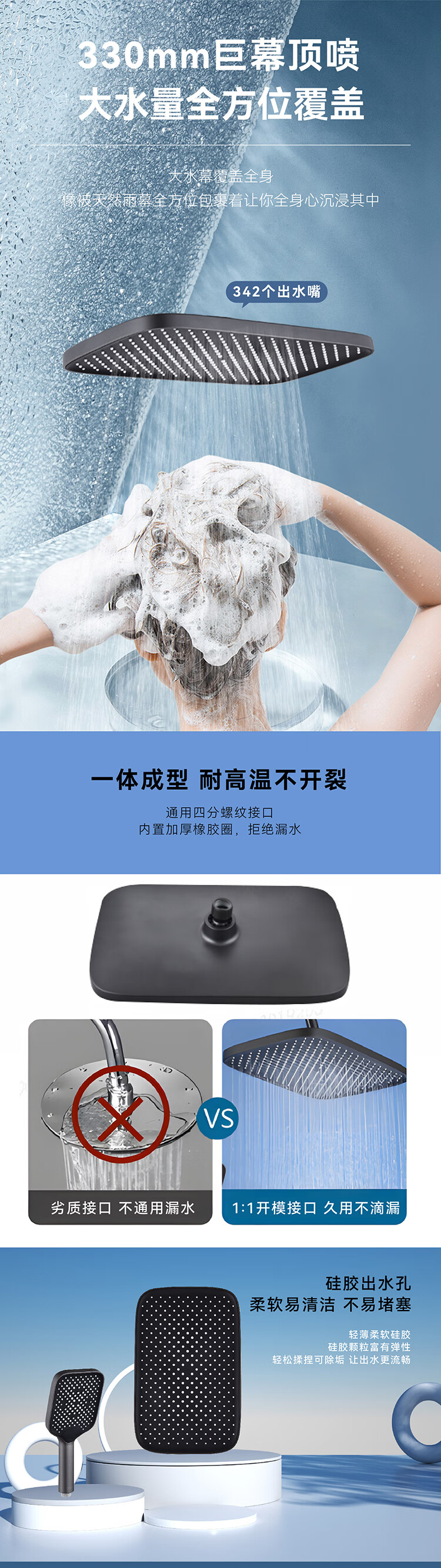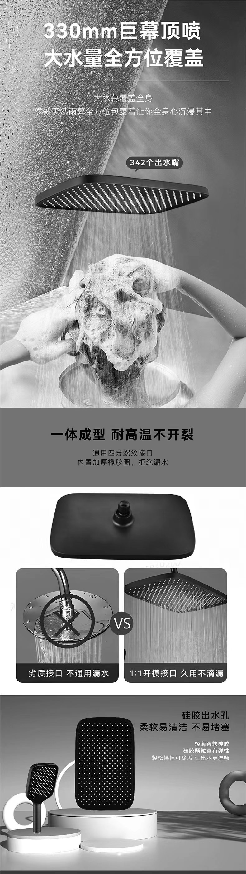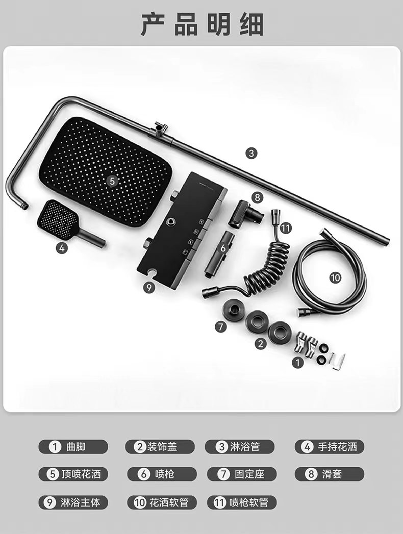 海尔调温四功能按键数显款淋浴花洒 大按键 滑套四功能钢琴按键+智能数显+灯 6422枪灰色/6421银色