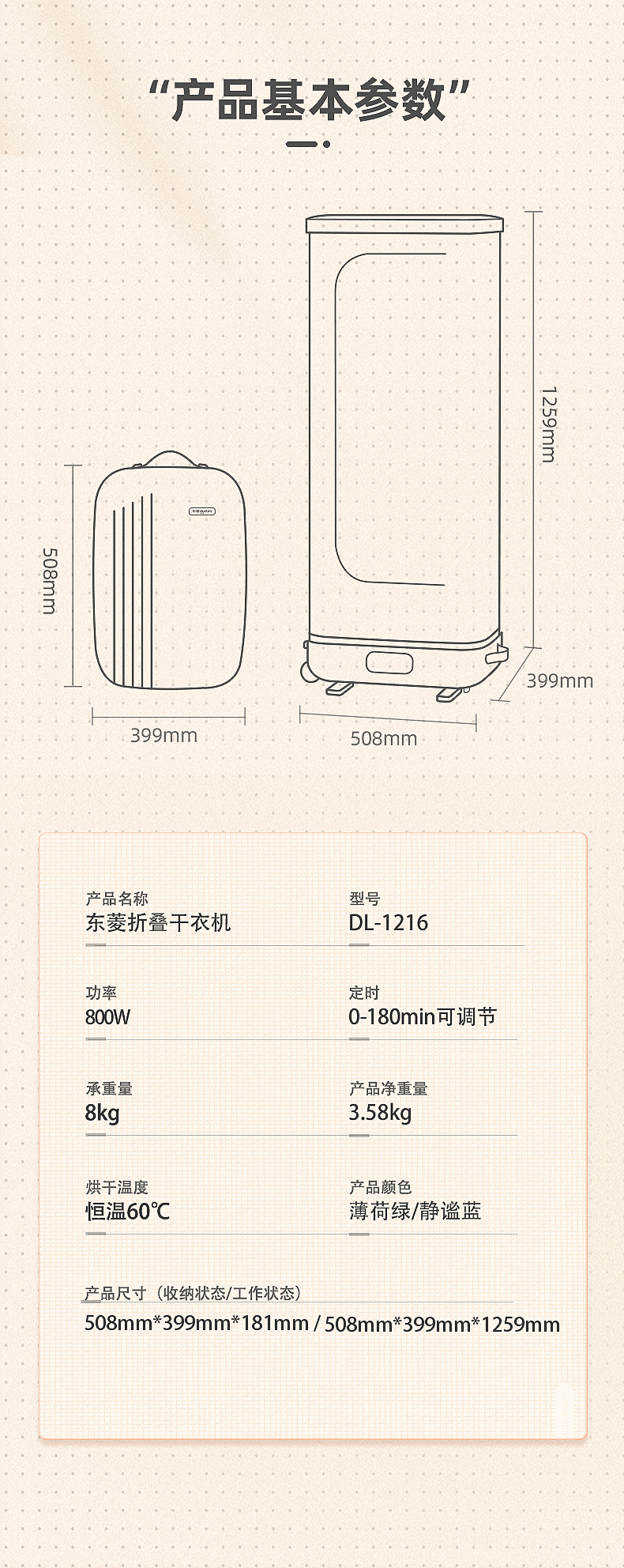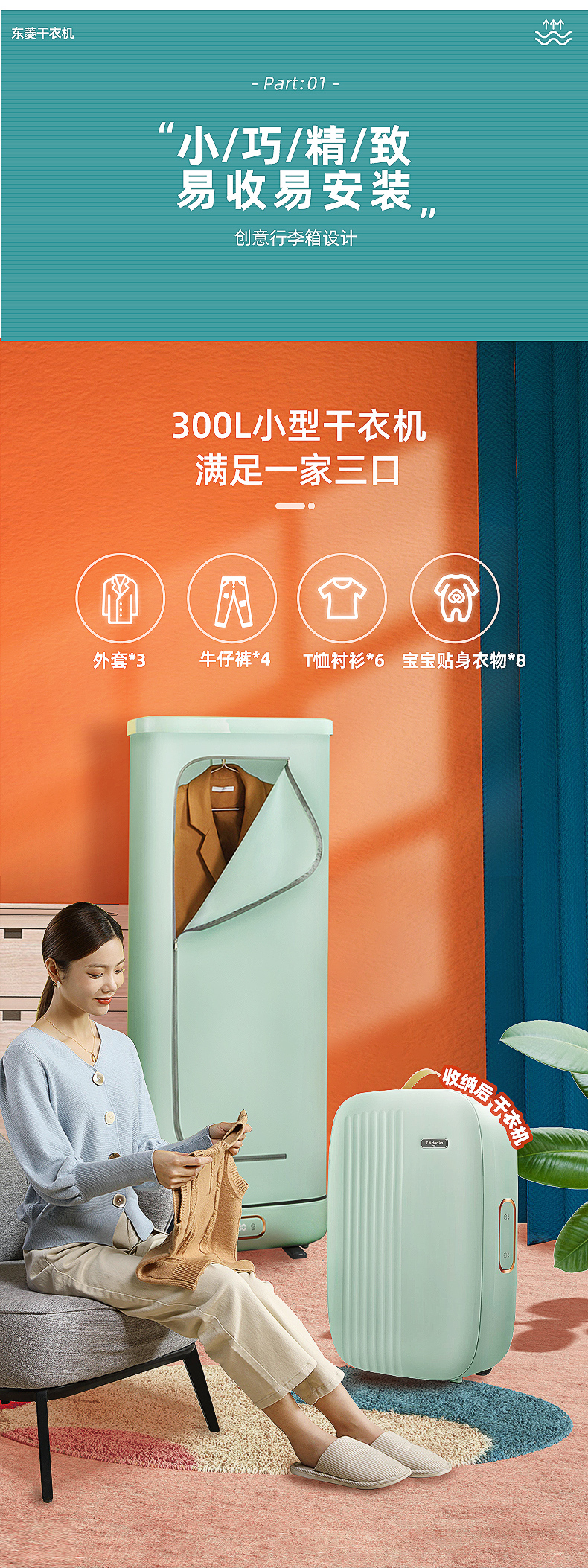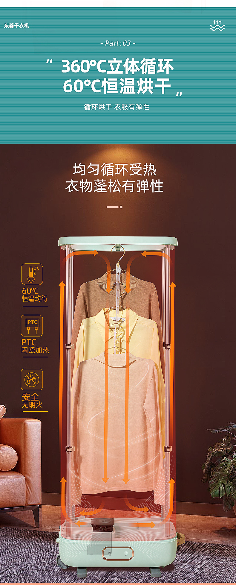 【可折叠收纳的干衣机】东菱烘干机家用360度恒温循环烘干除皱机 速干不伤衣 除螨杀Jun除异味 可180min定时
