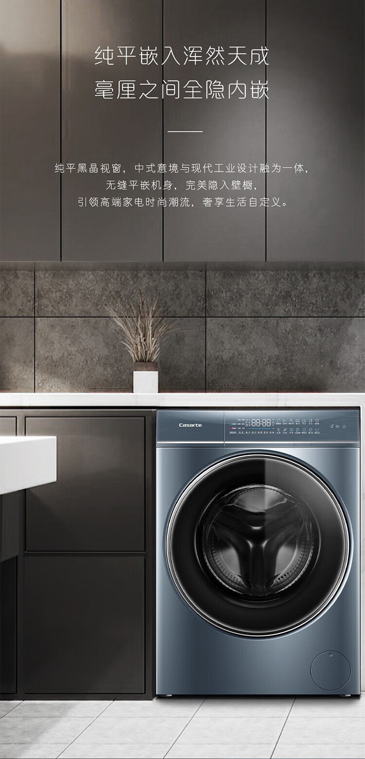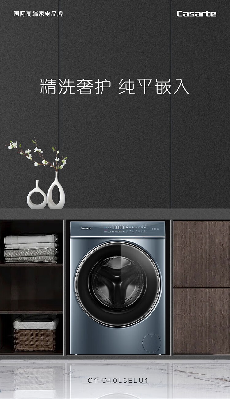 卡萨帝洗衣机纤诺L5纯平嵌入直驱变频10公斤超薄大容量双智能投放光等离子除菌触屏弹窗滚桶洗衣机 非烘干+触屏弹窗+离子除菌C1 D10L5ELU1