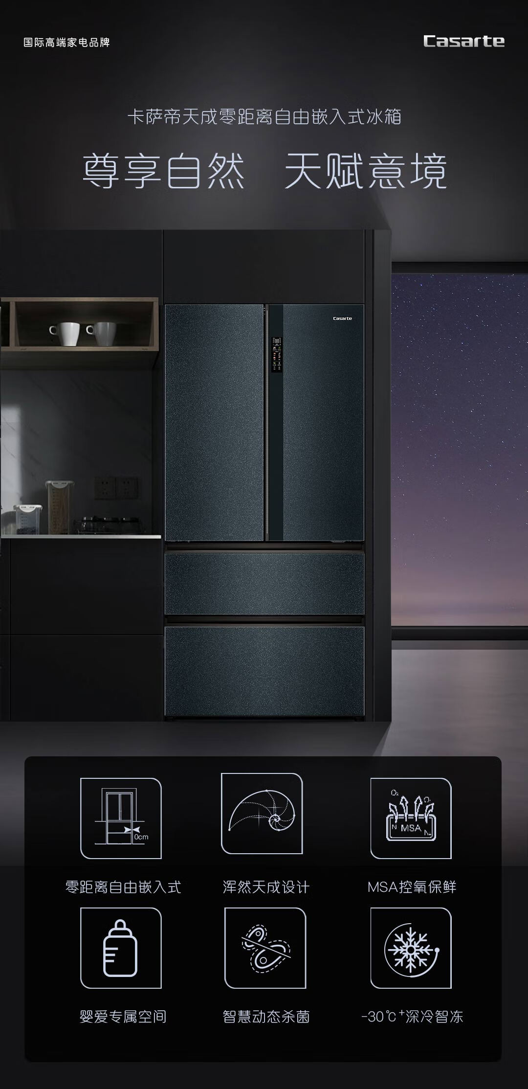 卡萨帝天成633升零嵌细胞级养鲜MSA控氧保鲜科技双重除菌净化彩晶多门冰箱BCD-633WLCFDA4A5U1