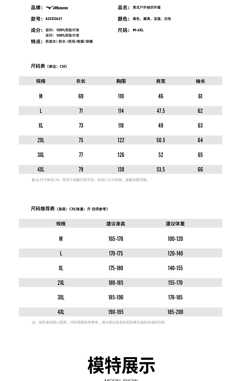 【美津浓】户外情侣款梭织外套A2CE2A21