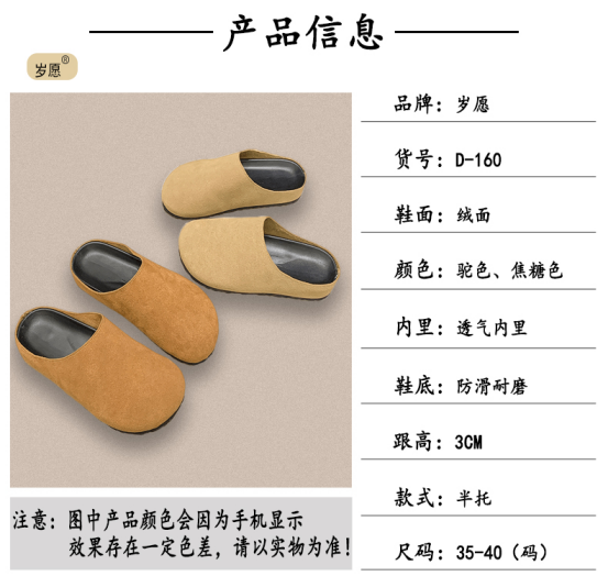 岁愿舒适休闲复古风百搭爆款包头半拖勃肯鞋D-160