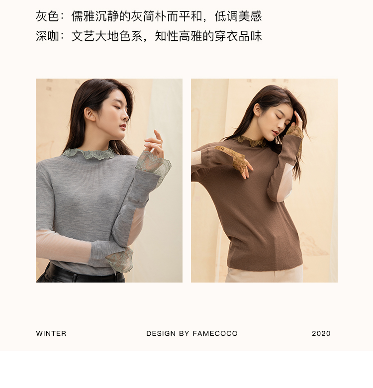 Famecoco范可儿羊毛衫女秋冬设计感内搭小众毛衣针织衫F195DB020