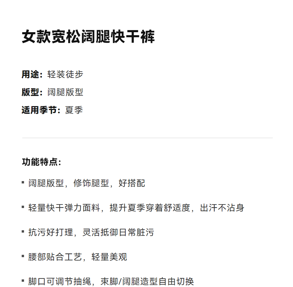 KAILAS凯乐石 女款宽松阔腿快干裤 KG2615404