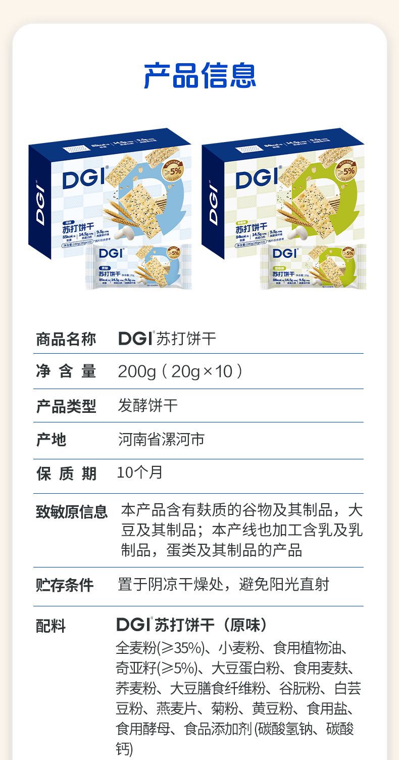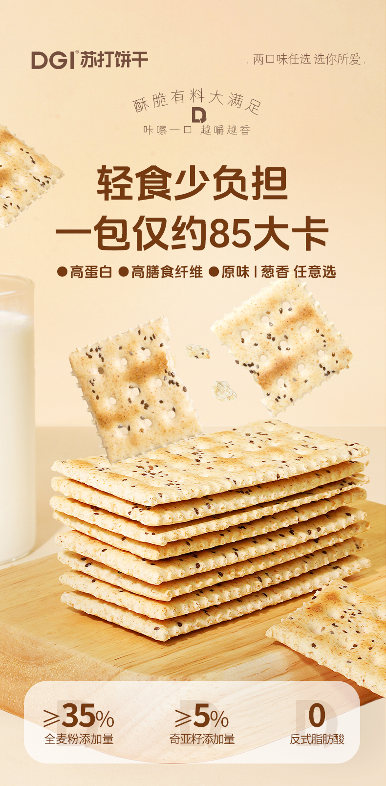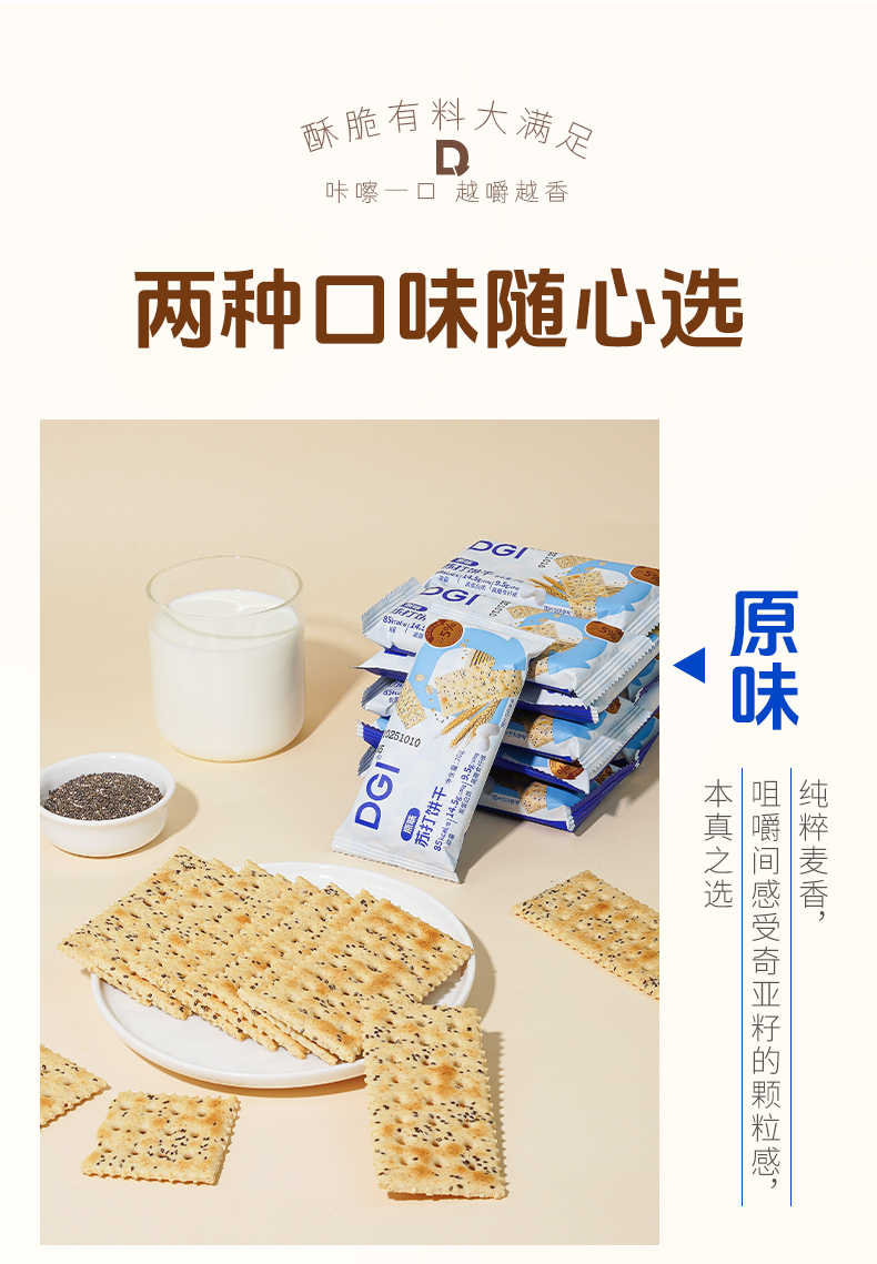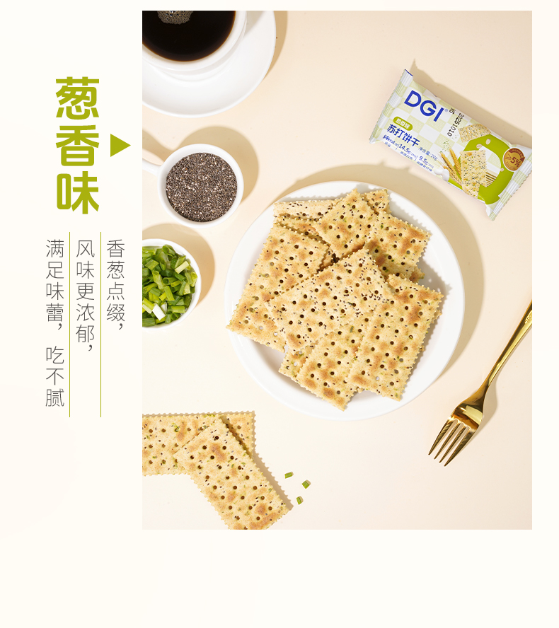 DGI 原味/葱香味 轻负担 高蛋白 高纤维 添加益生元及菊粉 肉眼可见奇亚籽 苏打饼干