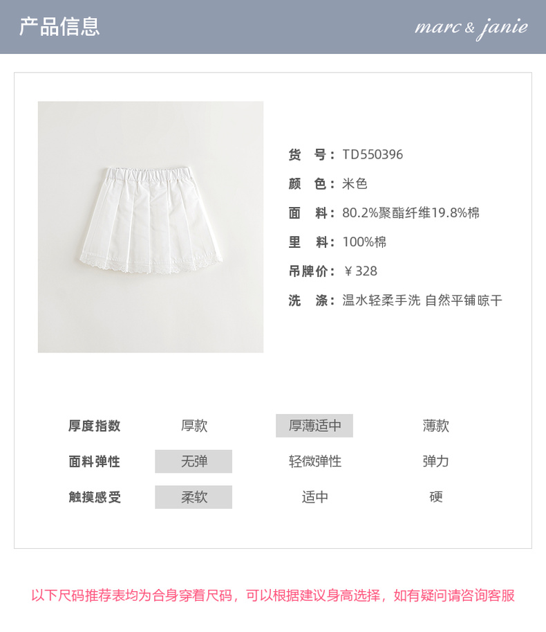 马克珍妮女童甜美花边百褶短裙 宝宝半身裙2025年春夏新款550396