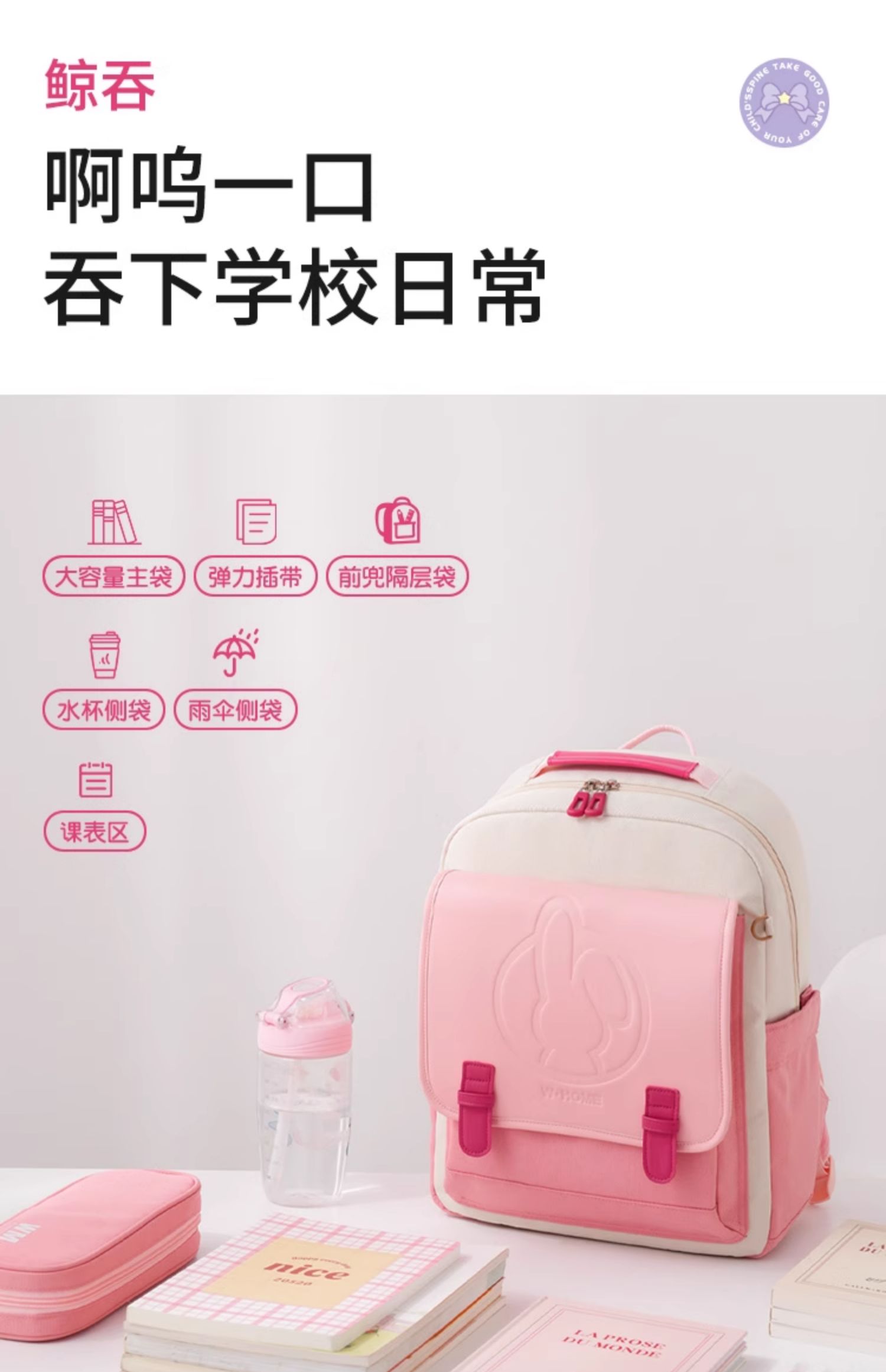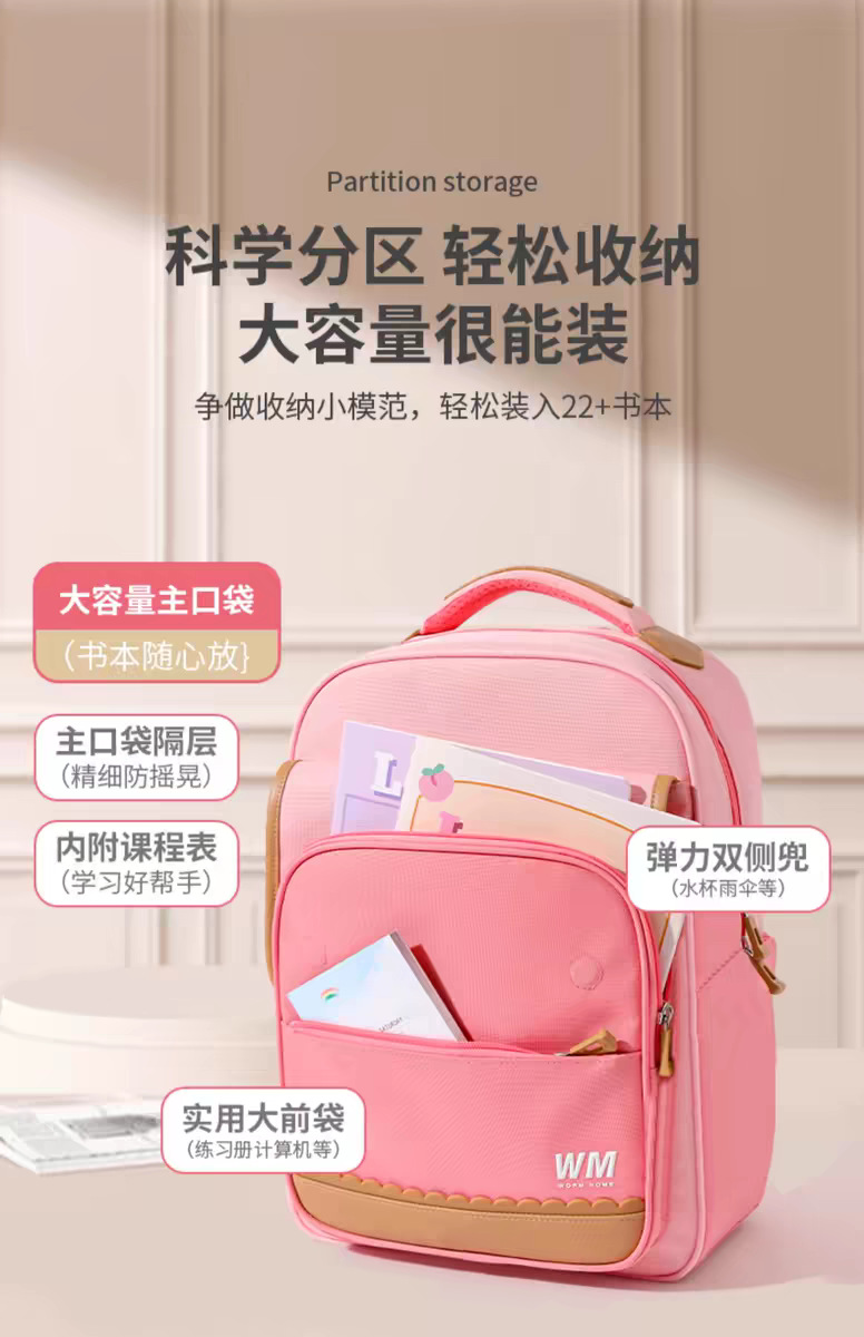 开学福利!赠送笔袋和课程表【剑桥护脊减负书包】小虫家新款儿童书包小学生女孩一二三五六年级轻便护脊大容量男女童背包