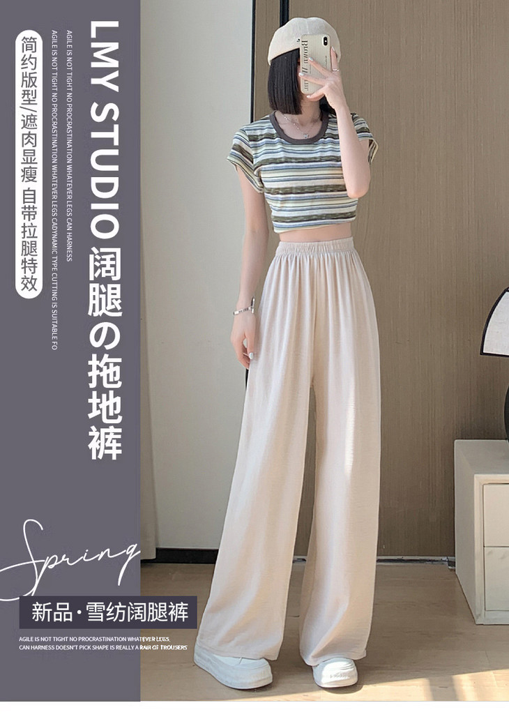 【春秋夏慵懒风阔腿裤】透气防蚊裤山本裤女薄款高腰垂感休闲直筒裤