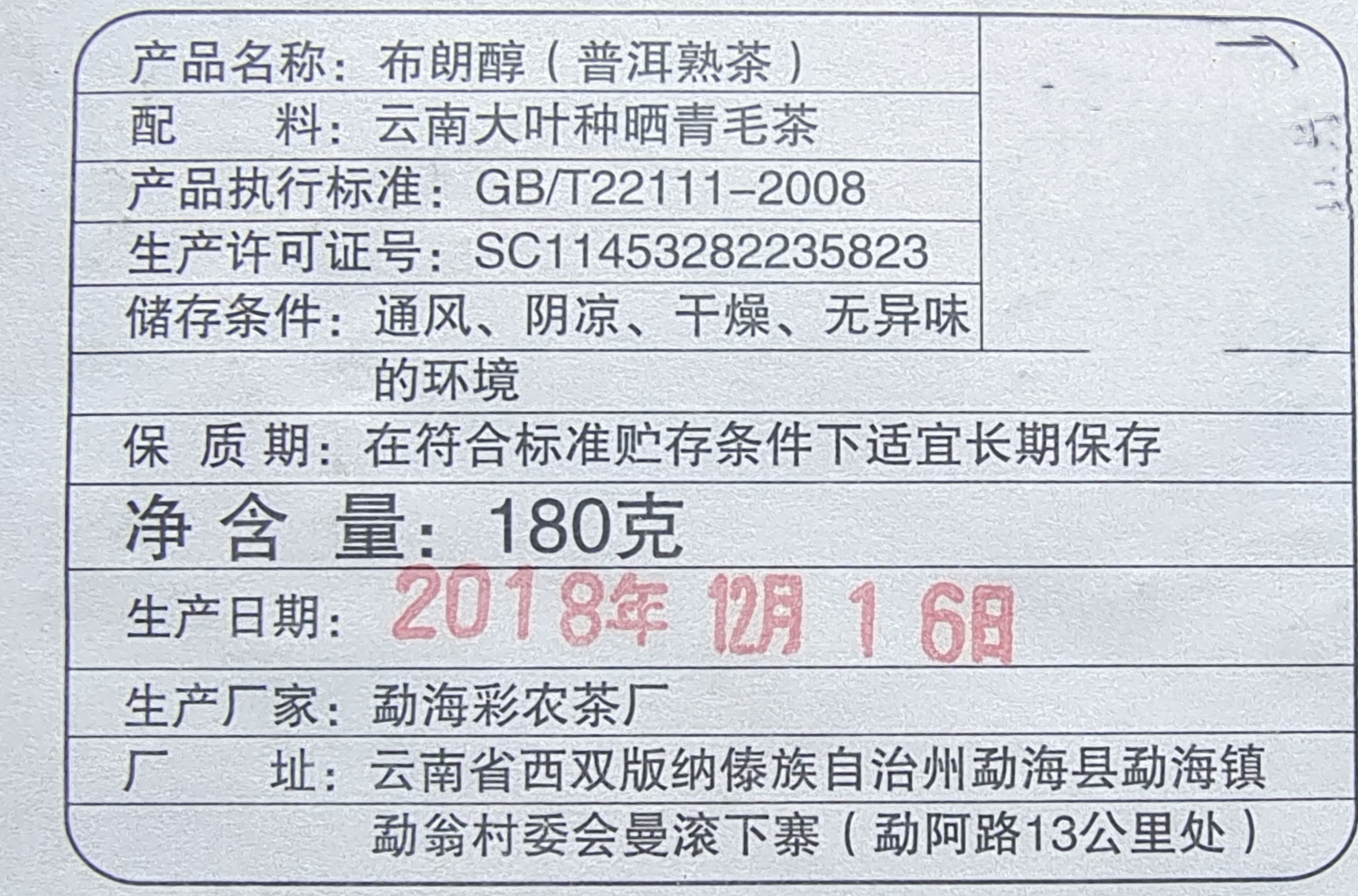 原料地域:勐海