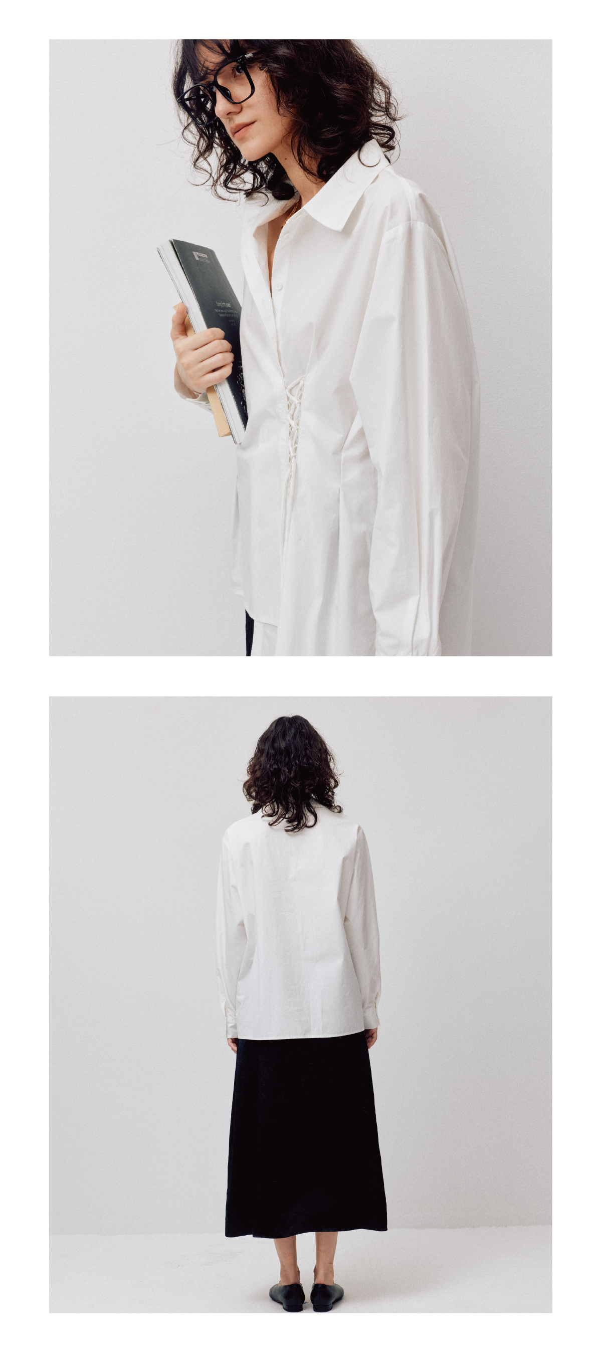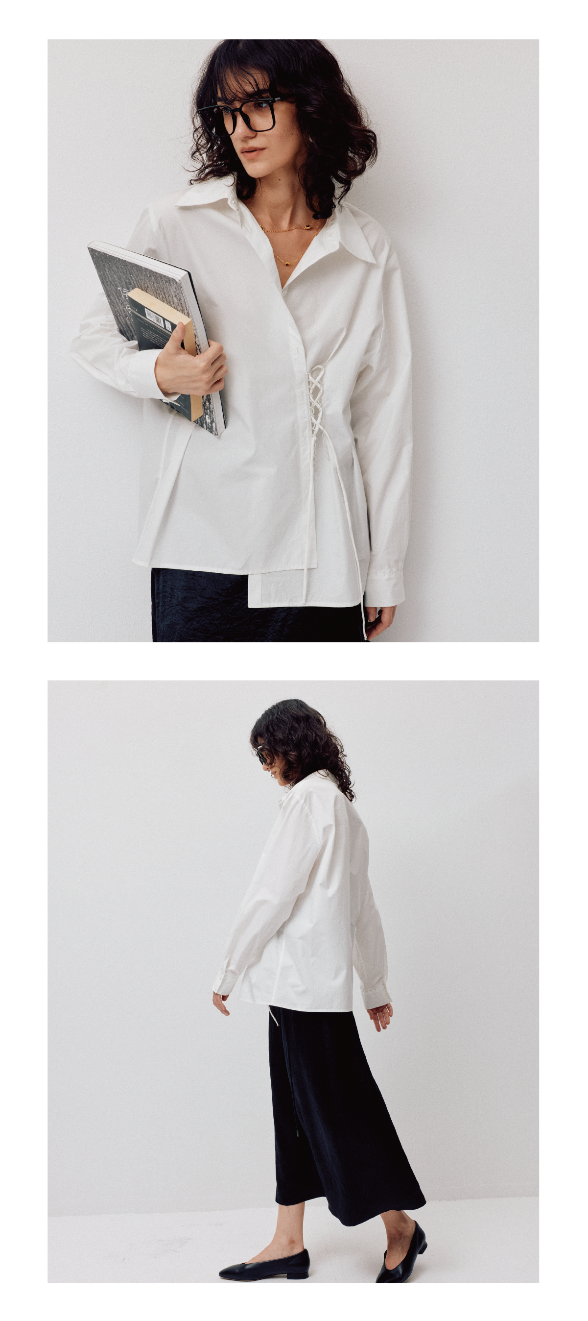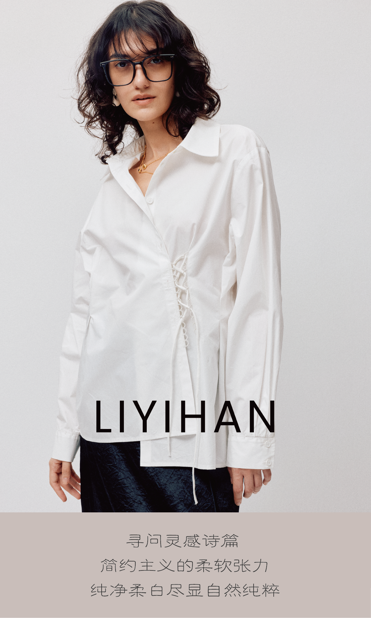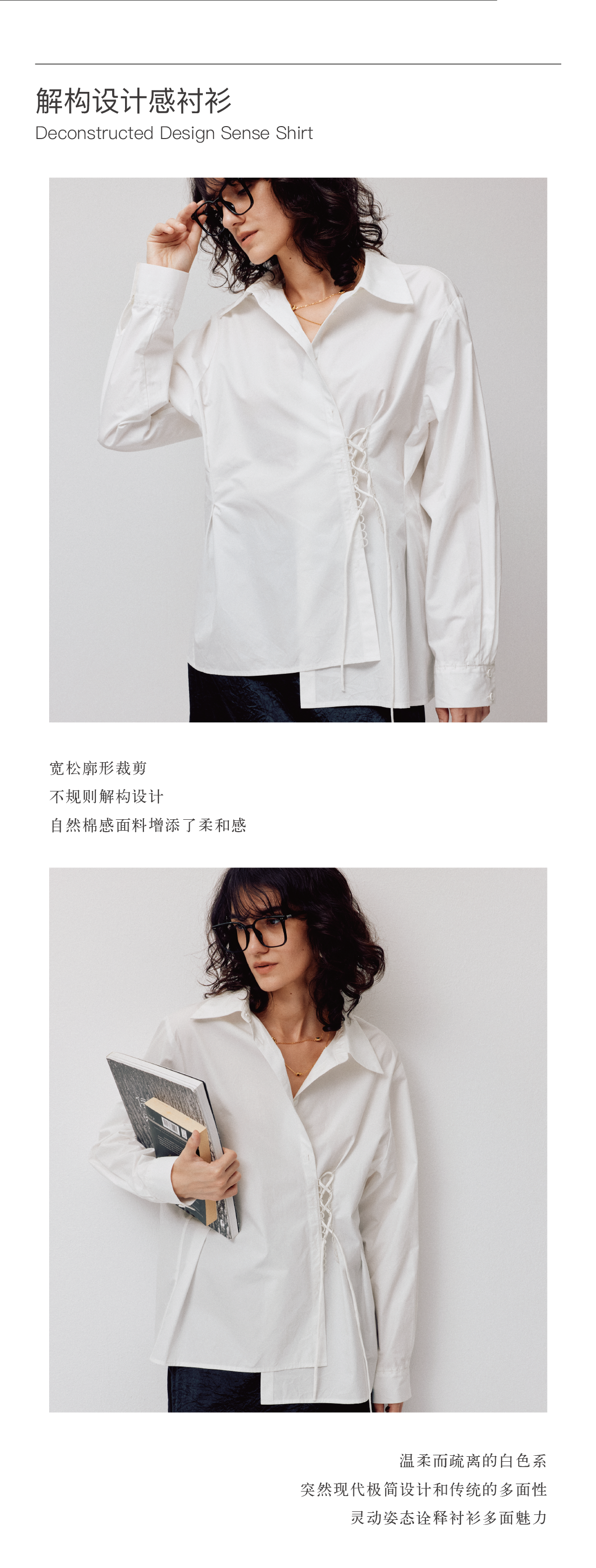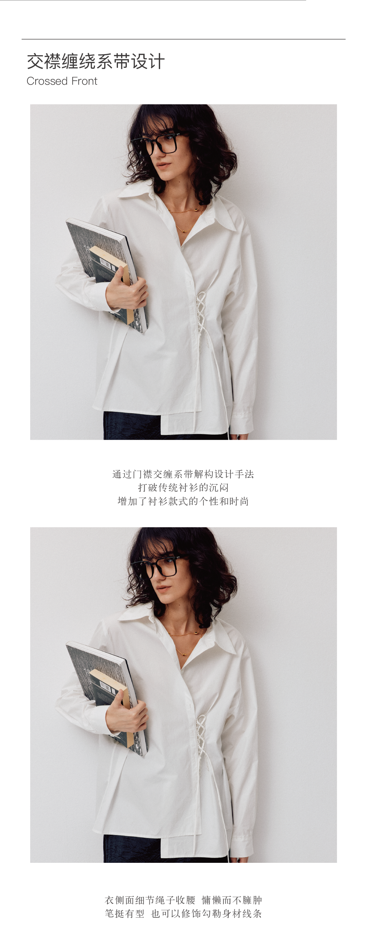 LIYIHAN清月鹊丨25春全棉门襟不规则衬衫两穿上衣女绑绳设计款