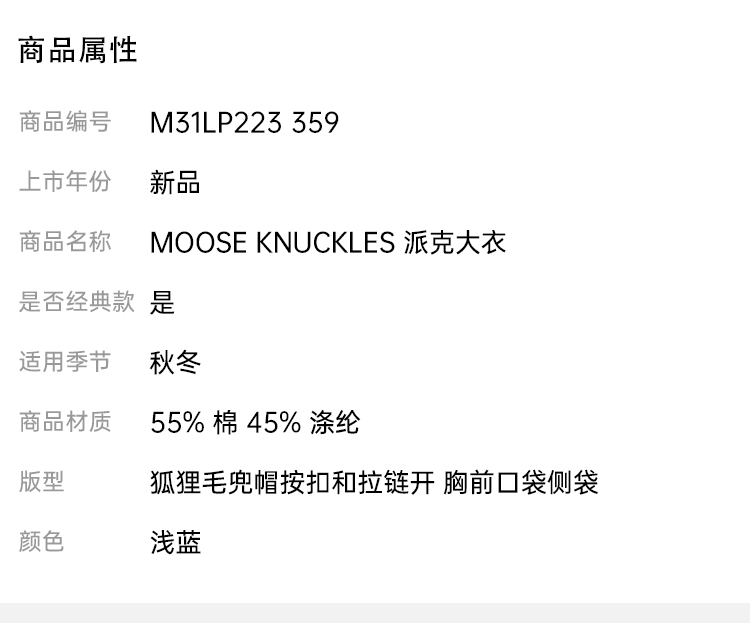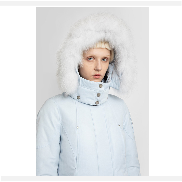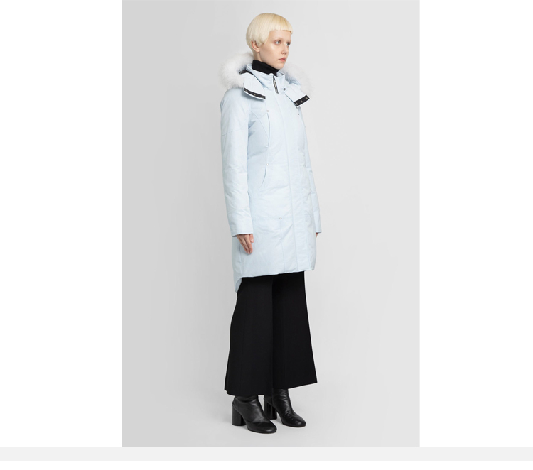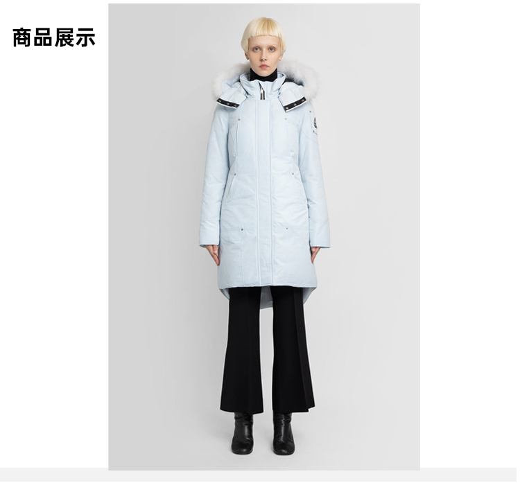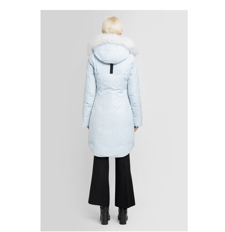 MOOSE KNUCKLES 女士金属驼鹿指关节徽标绗缝连帽羽绒服 浅蓝色 M31LP223 359