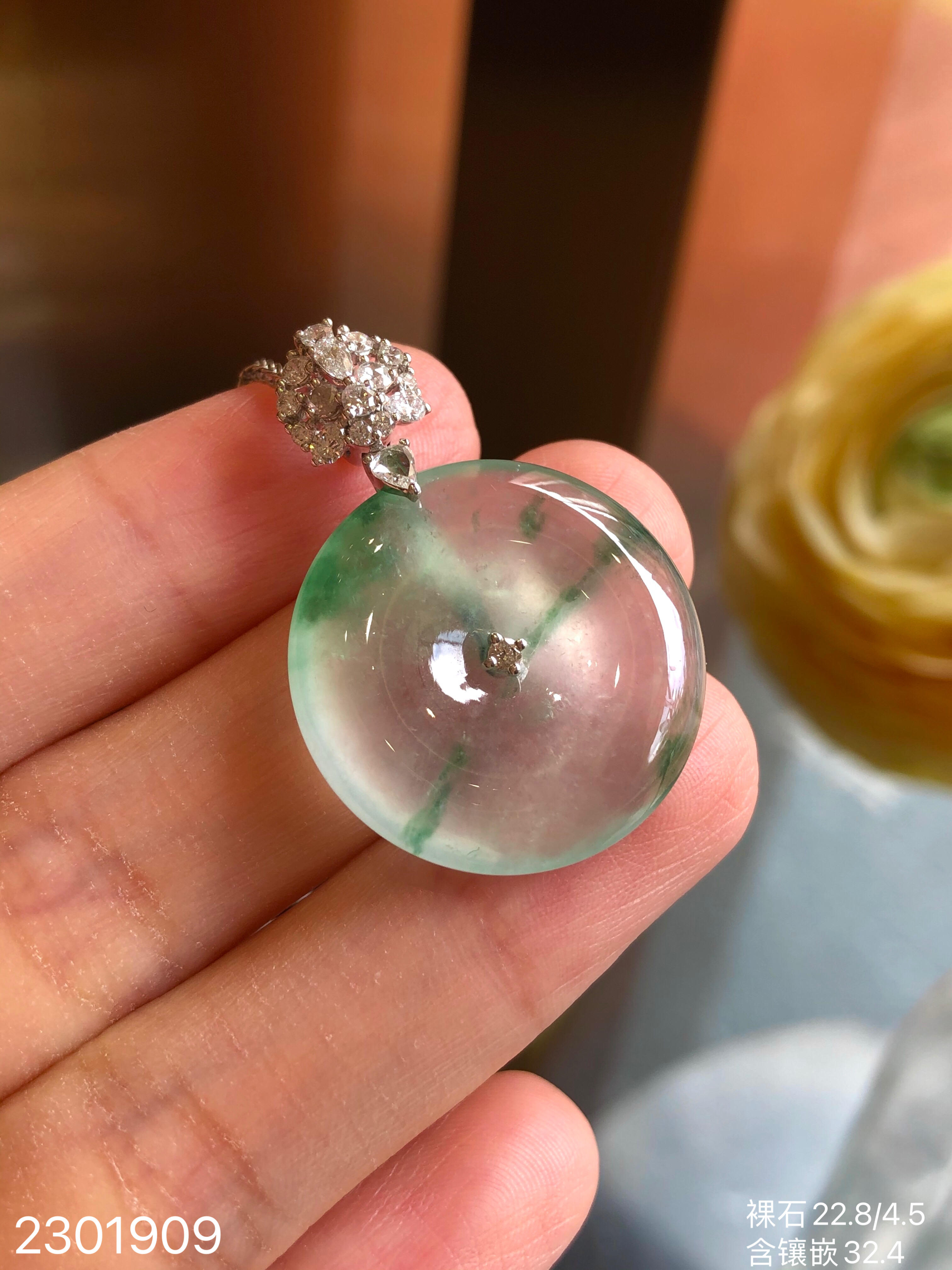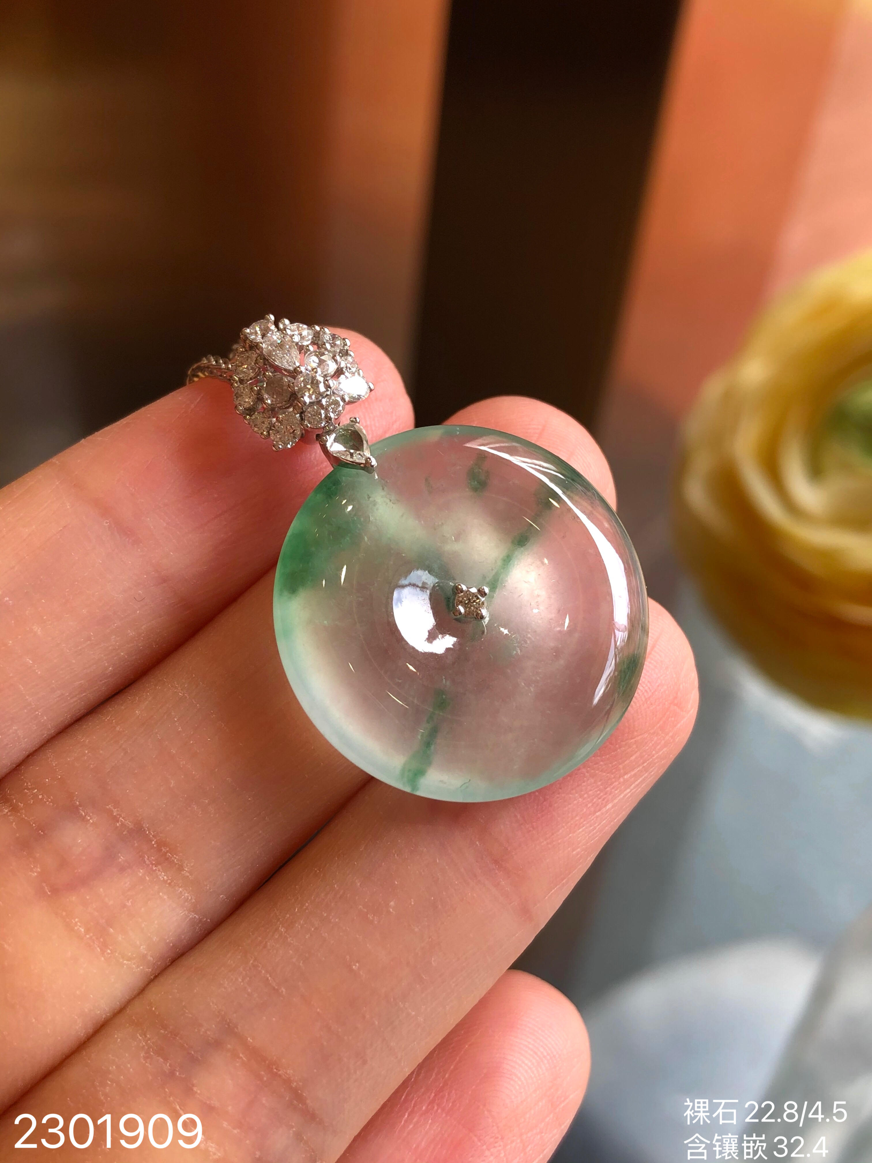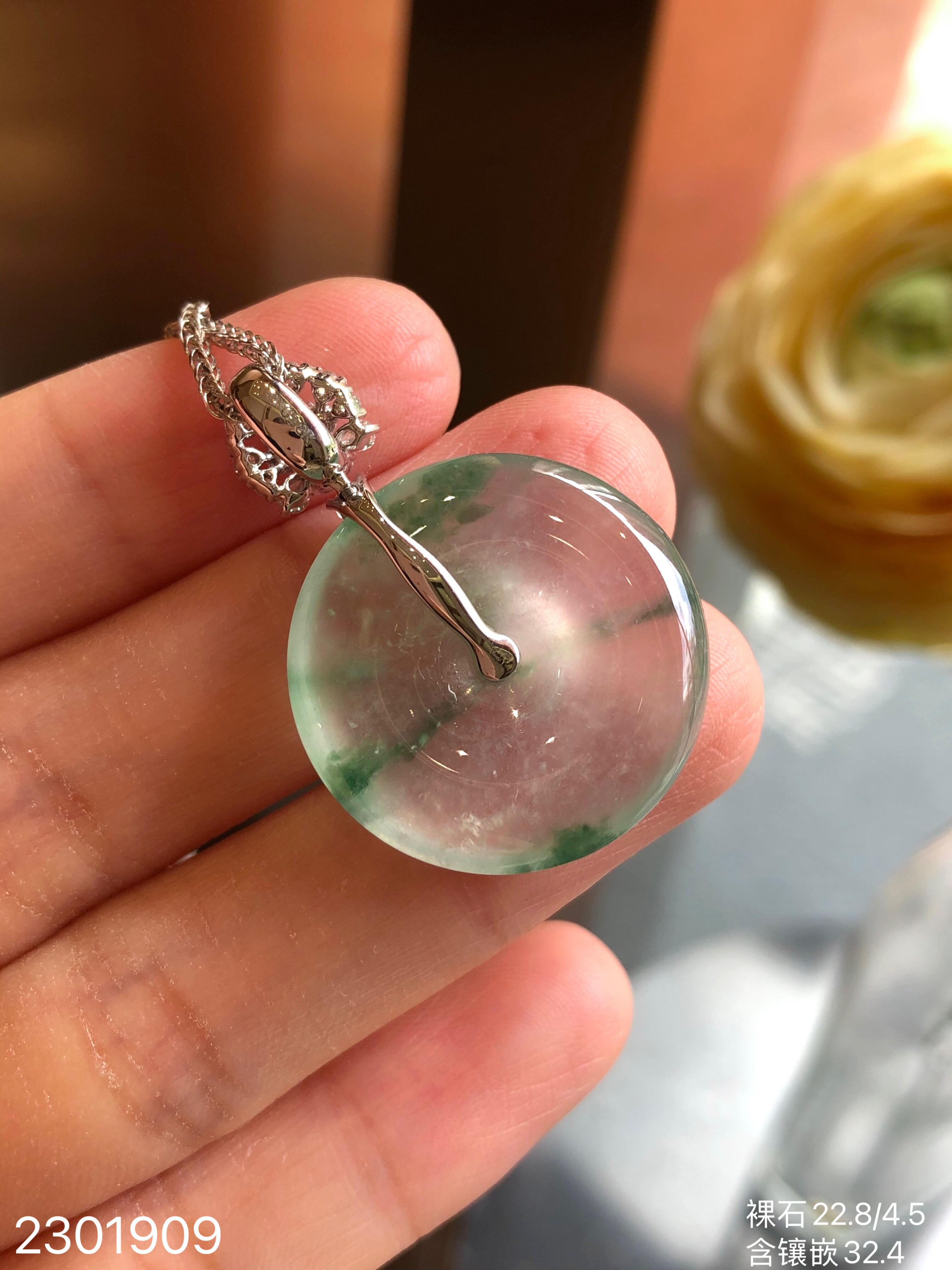 2301909,飘翠平安扣吊坠。具体价格微信咨询