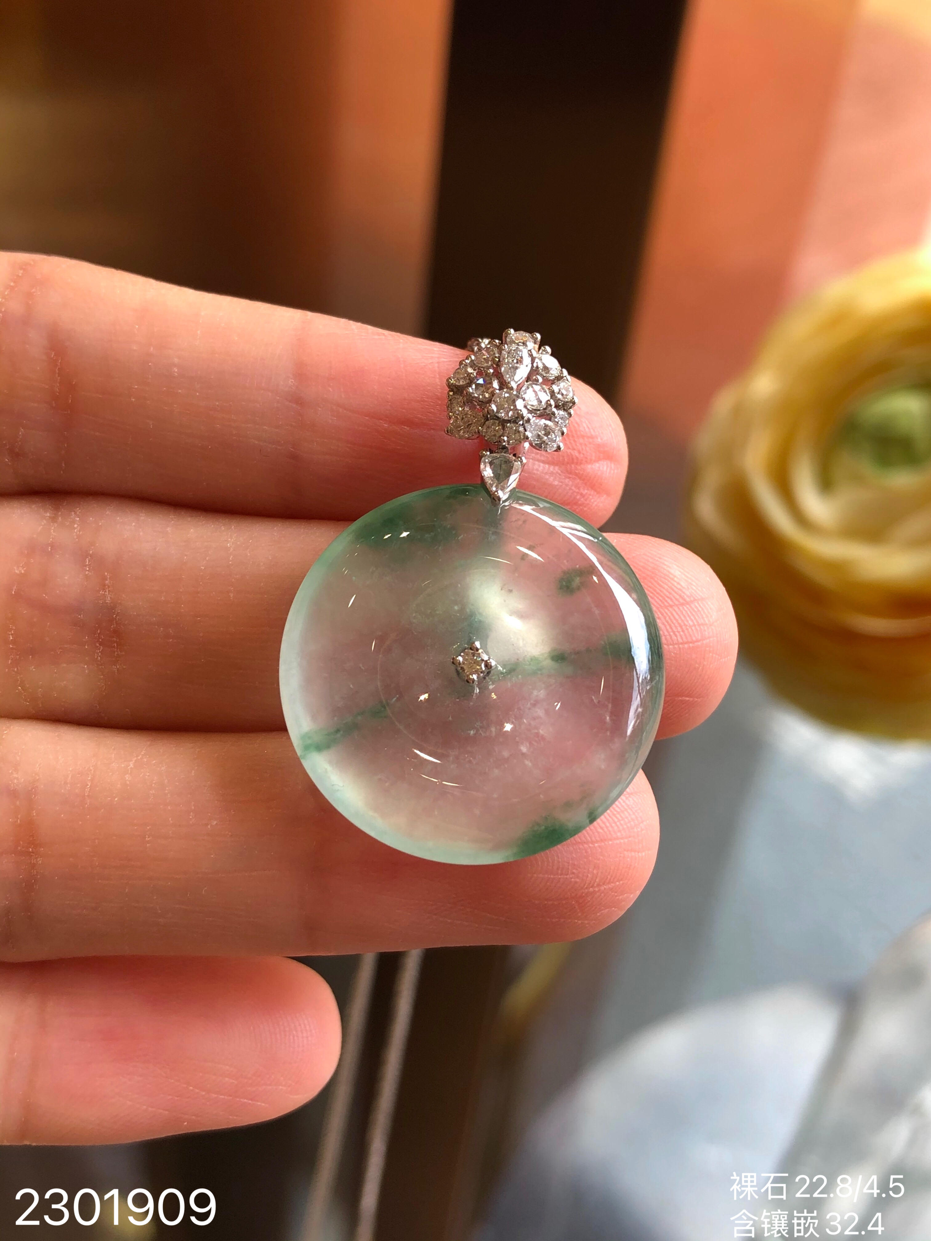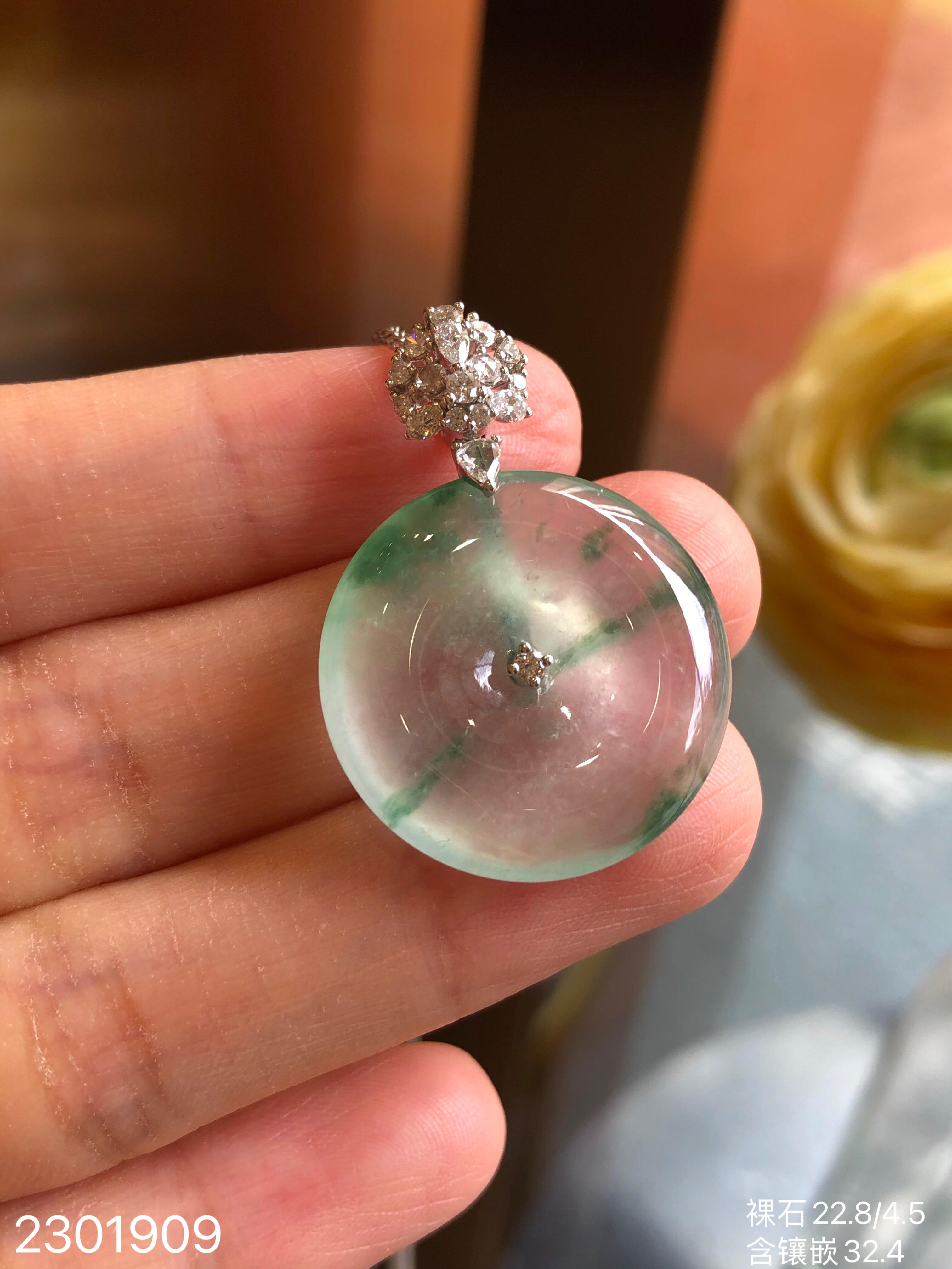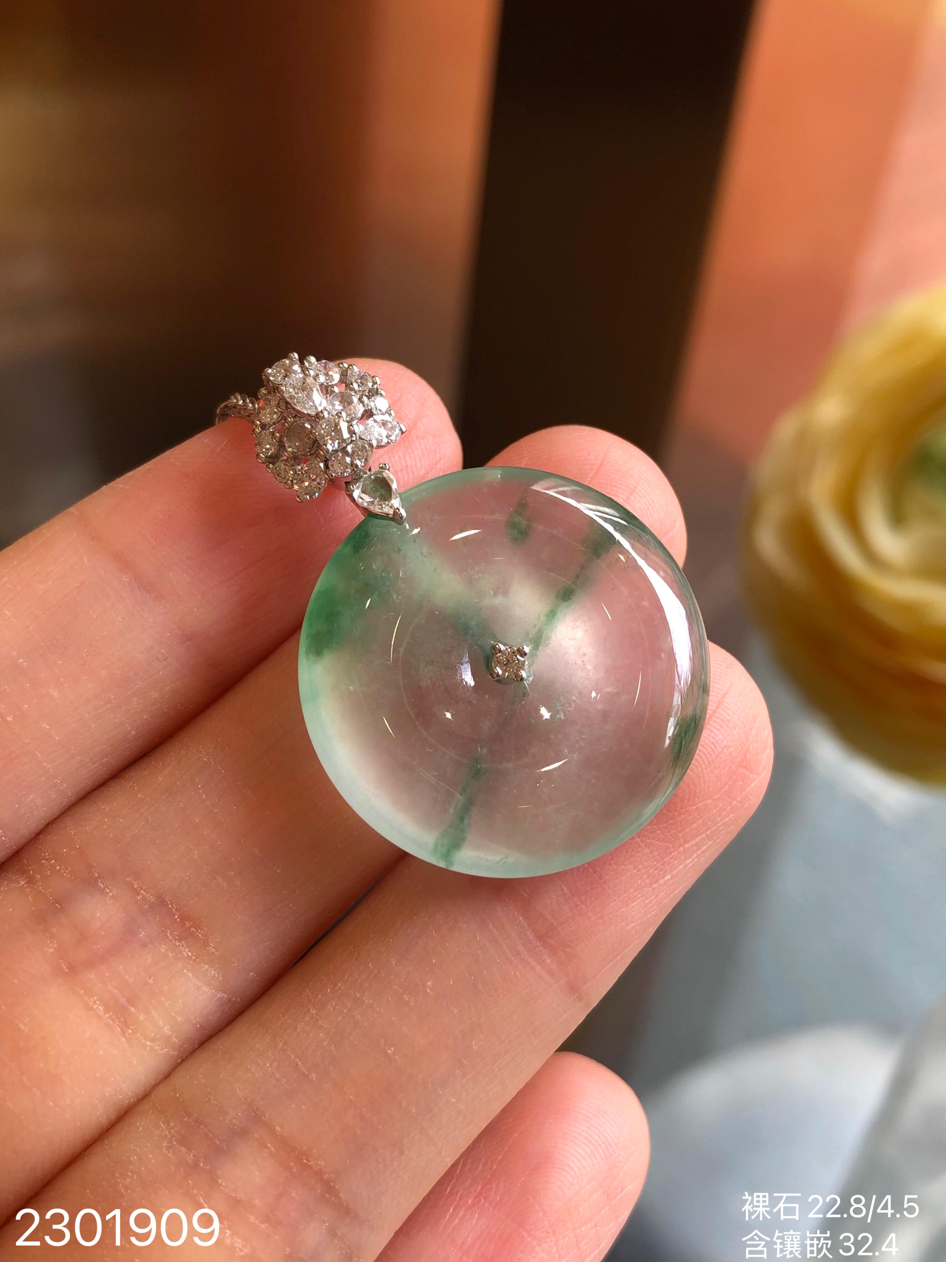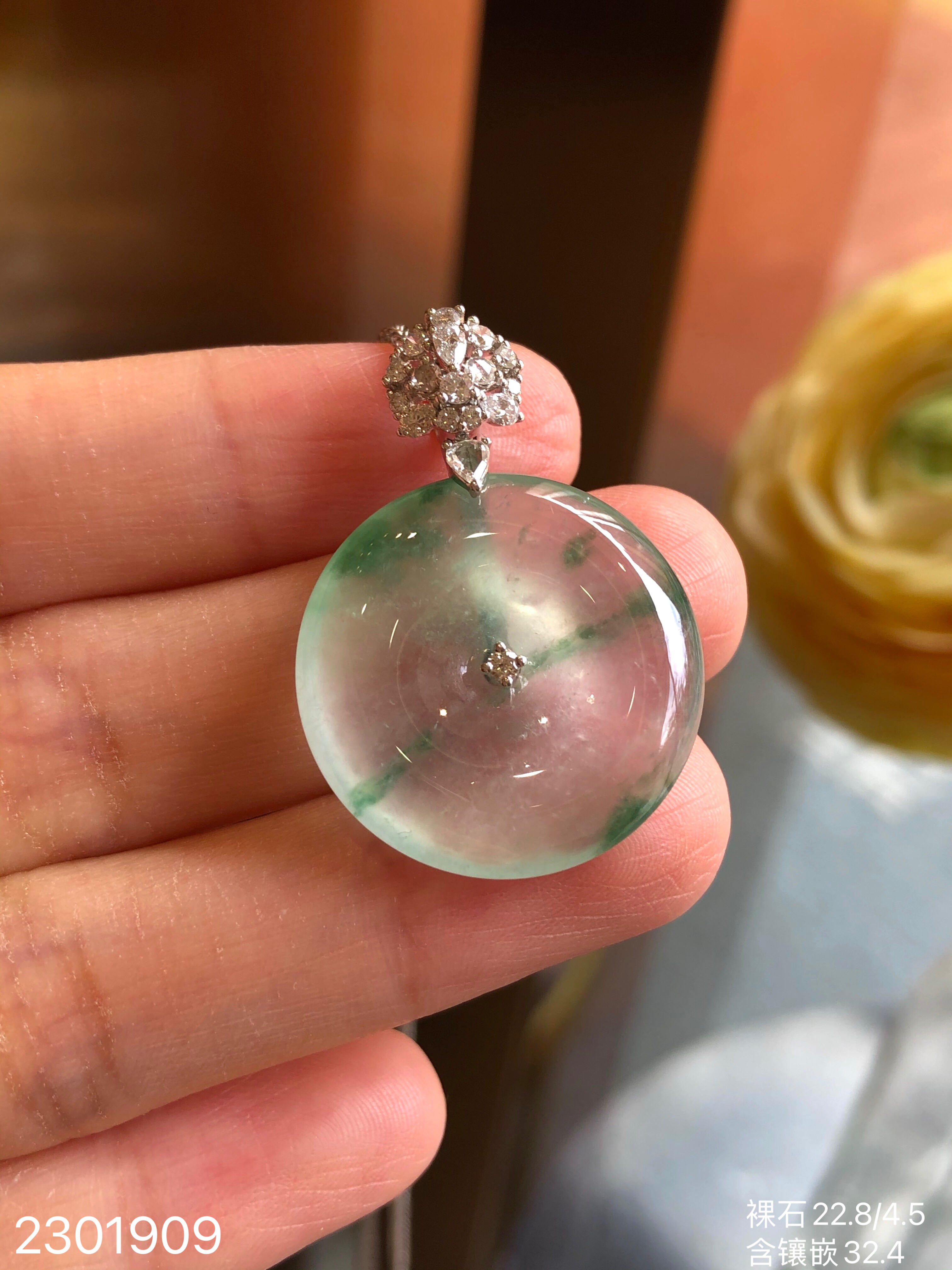2301909,飘翠平安扣吊坠。具体价格微信咨询