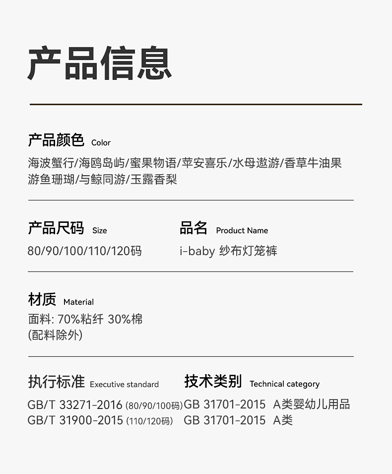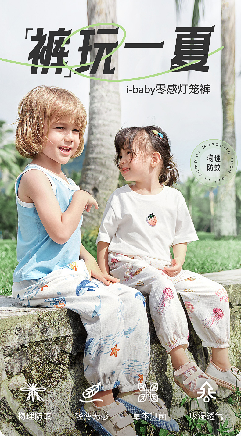 【58元2件单件不退 仅80码】i-baby/英伦宝贝儿童夏季纱布防叮咬灯笼裤宽松版运动新款