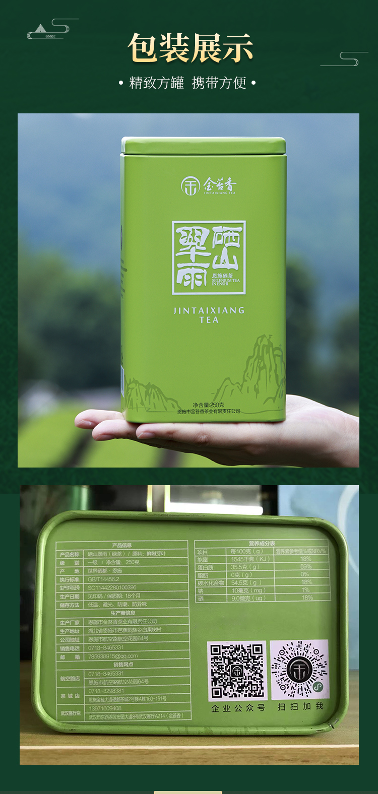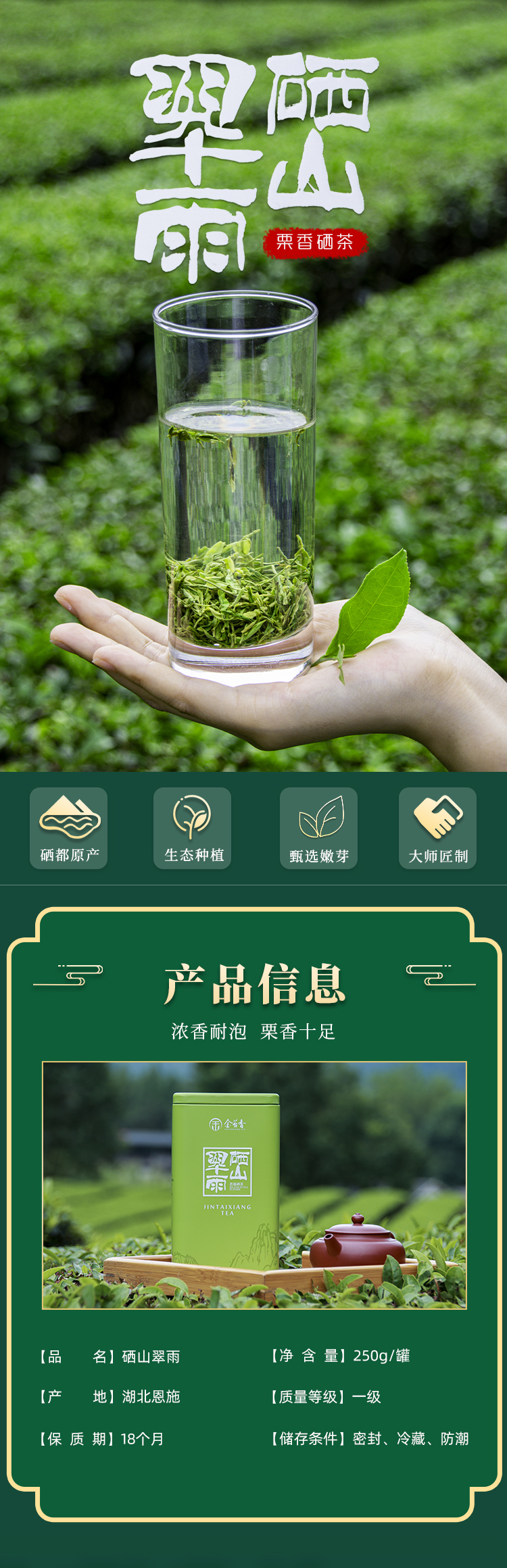 恩施 硒山翠雨 绿茶 250g/罐(方罐装)