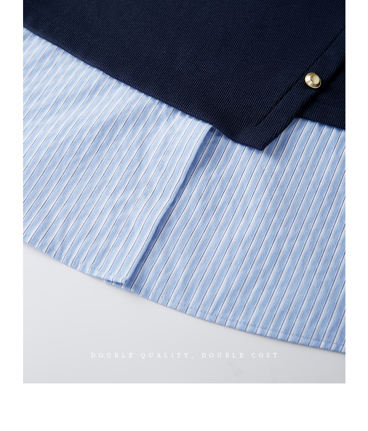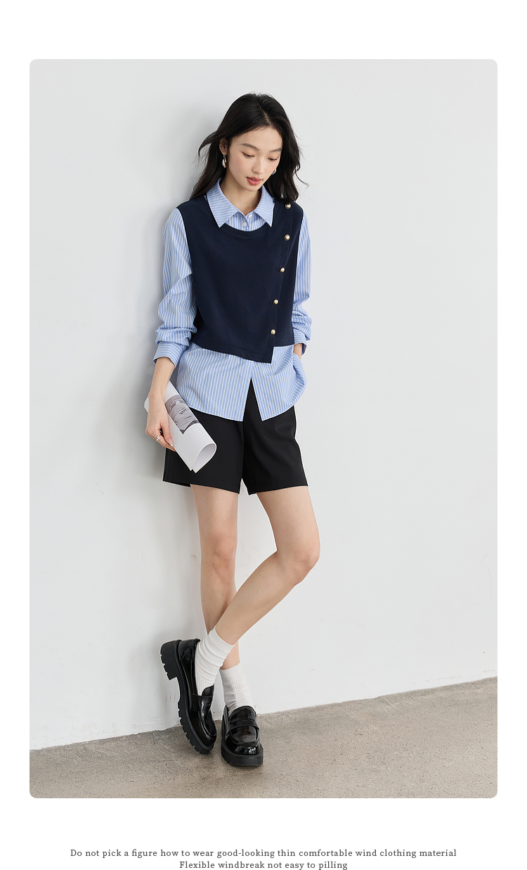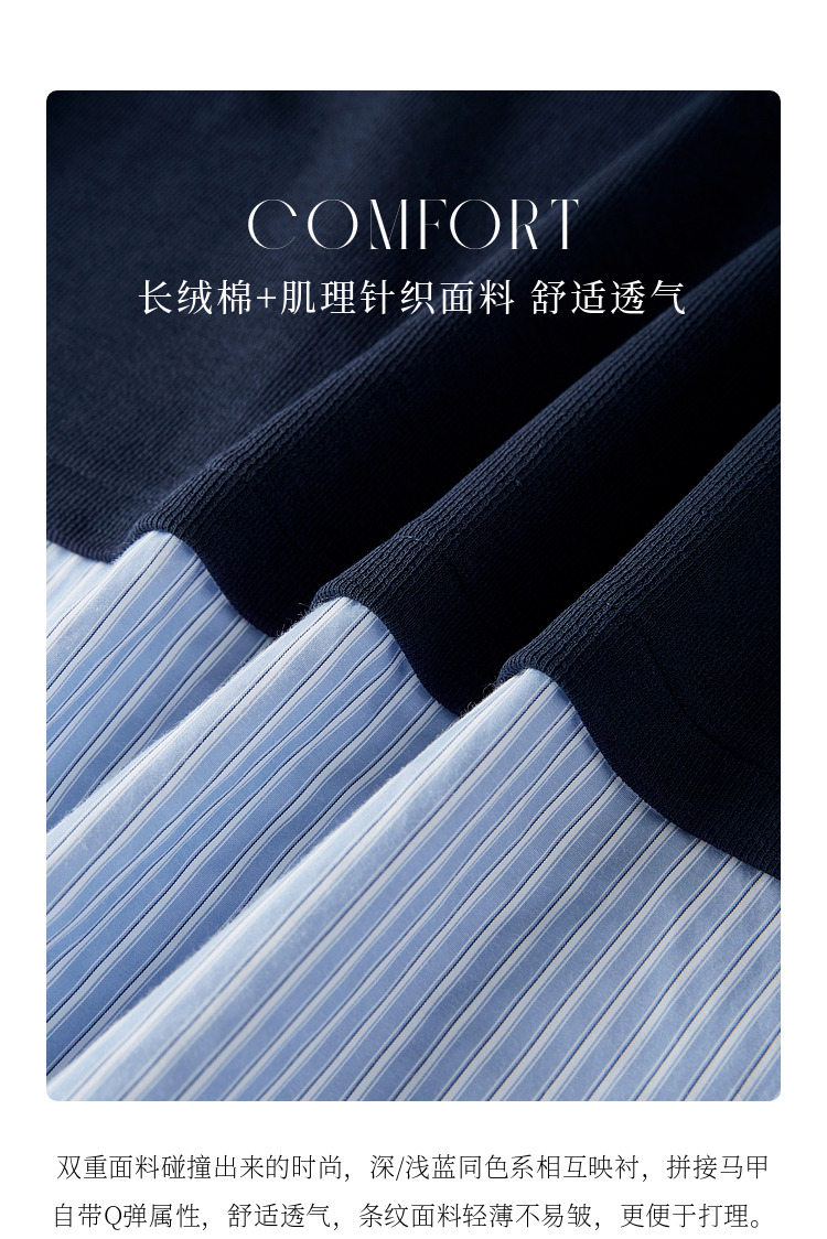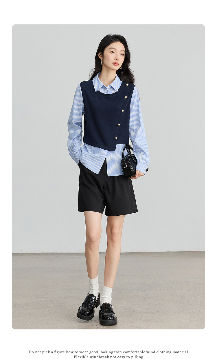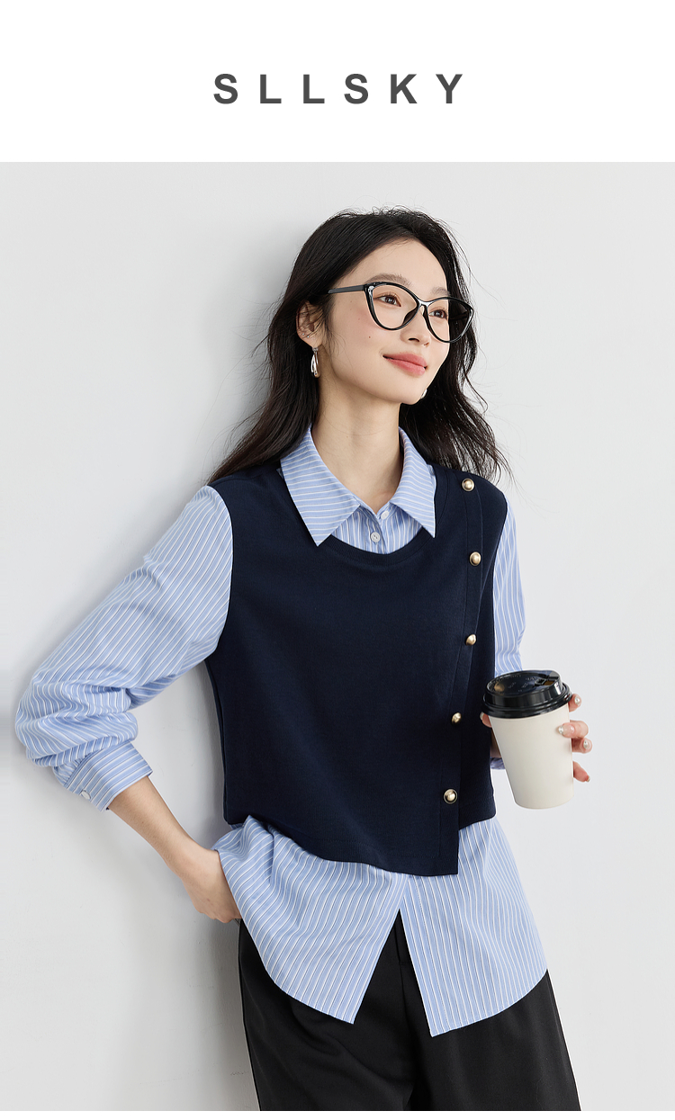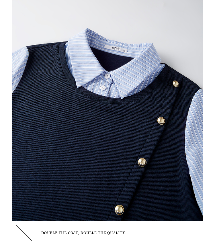 【1件75折】熙世界不规则条纹衬衫领假两件卫衣女设计感别致上衣2025春秋新款