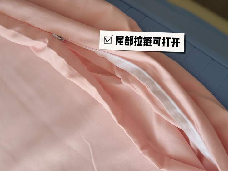 睡袋的侧边还有卡扣设计,睡觉之前打开就能躺进去