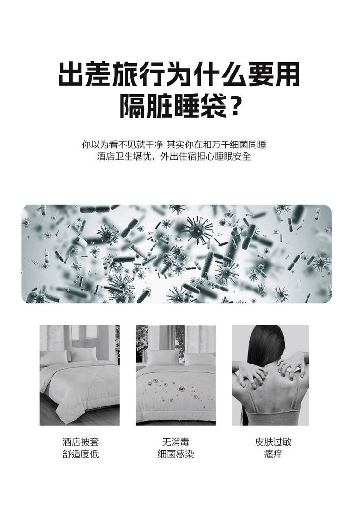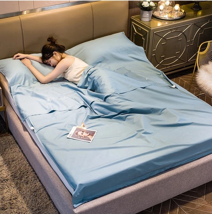 那么,在酒店卫生情况如此堪忧的情况下,我们还能安心差旅,好好睡觉吗?答案是:自备旅睡套件,也就是隔脏睡袋!