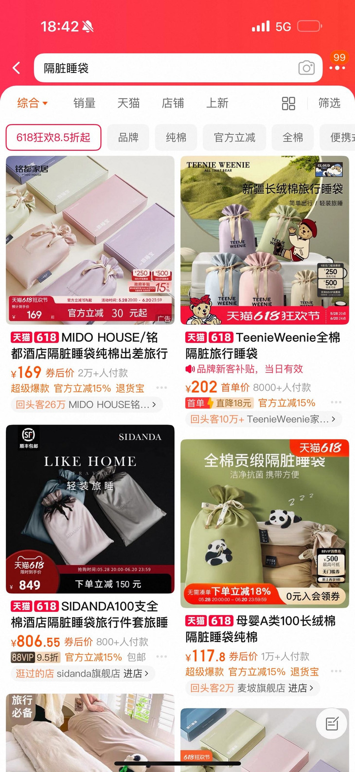 全网断货🔥非一次性使用💥【A类水洗棉酒店隔脏睡袋】别人149一套!我们开团💰39.9元起!